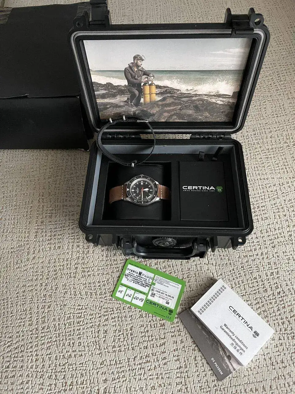 Sigo con la reducción de caja, y en esta ocasión tiene que salir este Certina, cambiado a un compañero aquí en el foro este mismo año; es un reloj que me gustó mucho desde que lo conocí, con esa apariencia Skindiver tan distintiva, pero que en cuanto llegó me di cuenta de que era demasiado grande para mi, por lo que apenas sale a la muñeca, así que mejor que lo aproveche otr@ compañer@.