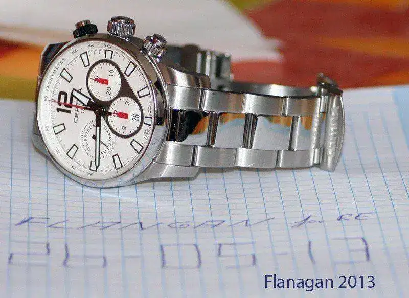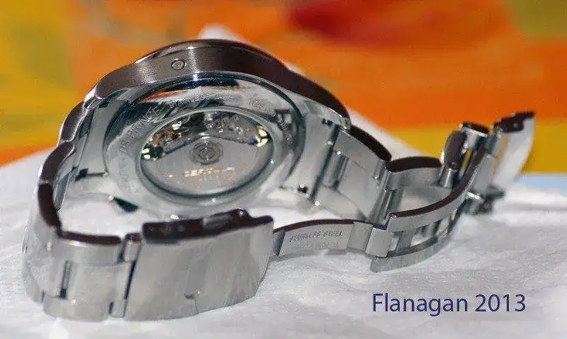 El reloj fue comprado a mercante (Hora de Moda) en enero del 2011, garantía ya pasada, tiene las lógicas marcas de uso pero se encuentra en un estado muy bueno, el ajuste diario suele estar en unos 5 segundos de adelanto, viene con todo el set completo, caja interior, exterior puntero para el ajuste de día, manuales, bueno la correa de piel esta en un estado malo pues trate de lavarla para ver si me dejaba de dar alergia, pero la entrego con su deployante que si esta nuevo, compré a los dos meses el armis de acero, que entrego montado con el reloj.