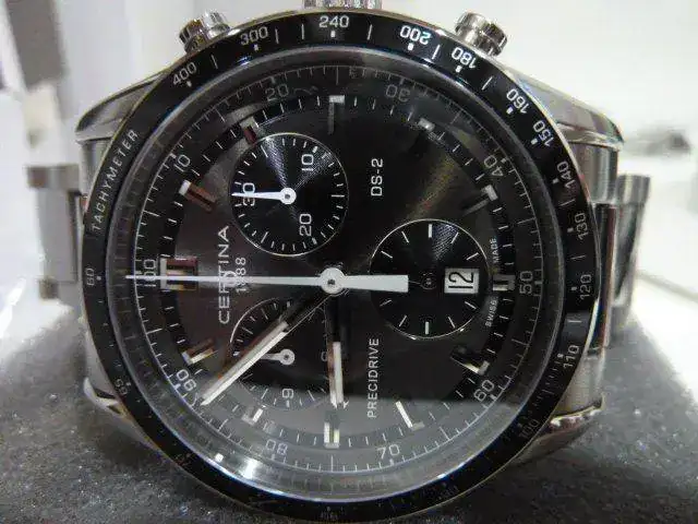 Modelo:Certina Ds2 precidrive con armis y esfera antracita/titanio(segun le incida la luz),movimiento de cuarzo termocompensado mide las centesimas de segundo...es un espectaculo verlo en directo y desde que lo tengo no me ha variado nada,vamos un cosc...