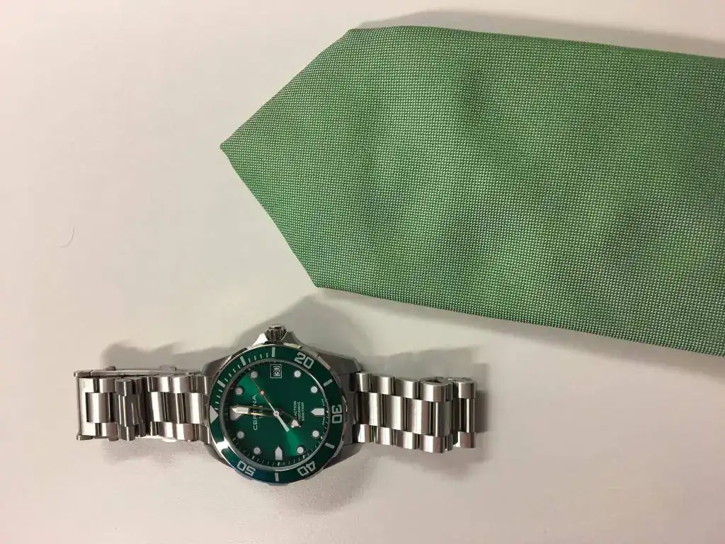 Feliz con mi "Hulk" de cuarzo. Hoy lo he estrenado y encantado. Con corbata verde haciendo juego queda muy elegante: