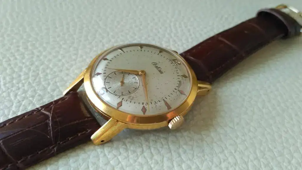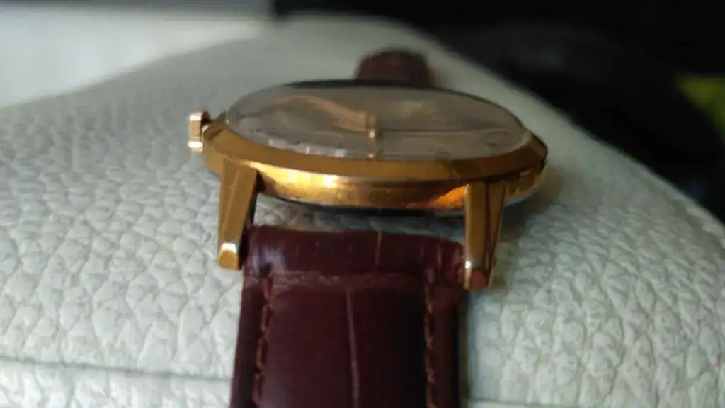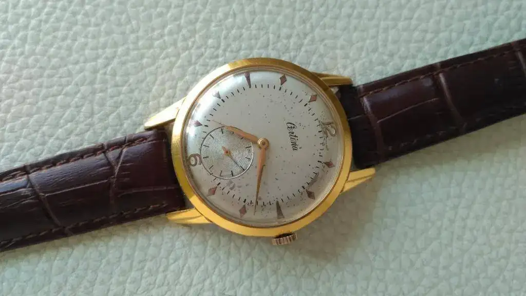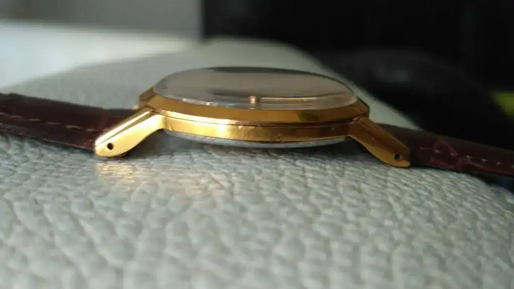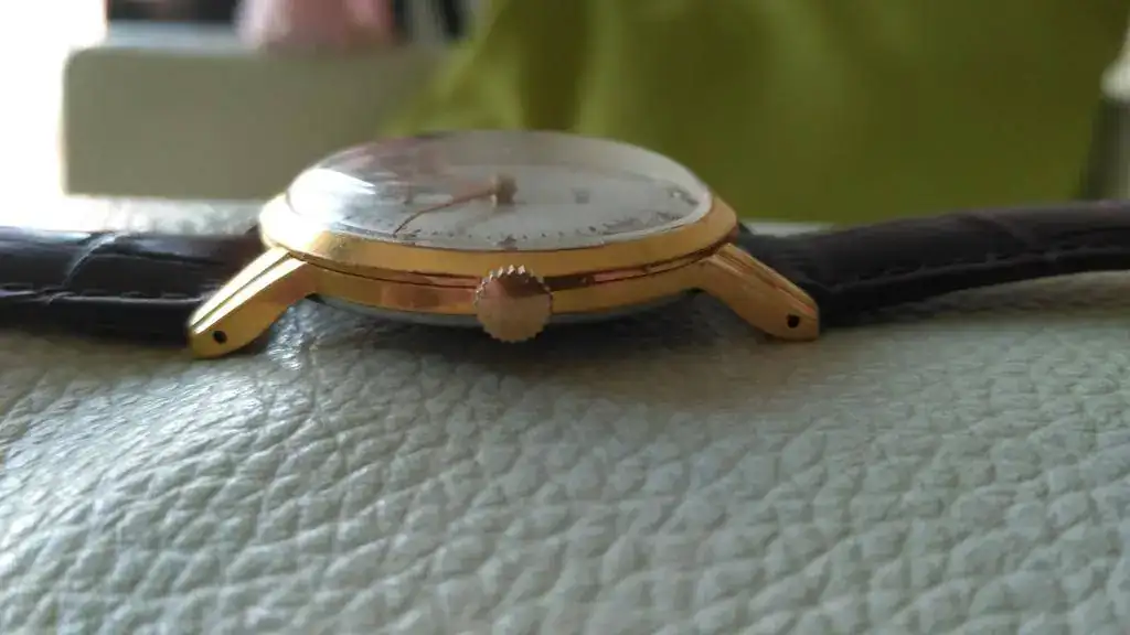Voy a continuar haciendo hueco en la caja (o más bien cajas), y dado que tengo otro KF-330 muy parecido, pongo este a la venta. Se trata del celebérrimo KF-330, con una caja de unos contundentes para su época 38 mm (de los apodados "jumbo" entre los aficionados). Aunque muestra unas innegables heridas de batallas pasadas, que he tratado de reflejar en las fotos (de ahí su ajustado precio), conserva buen aspecto general, el dorado de la caja de 20 micrones se conserva estupendamente, mostrando muy pocos desgastes. La esfera tiene dos tonos o matices distintos en el centro y en la parte exterior, que no son fáciles de capturar en fotos. Viene equipado con una correa de piel de la marca Shanghai sin una sola puesta. Aunque no lo he comprobado recientemente, puedo decir que está en buen estado de marcha, hace algo más de dos años lo revisé, limpié y aceité yo mismo, y aunque he de decir que ello no tiene las garantías de un trabajo profesional, si es una garantía de que la máquina no tiene mas porquería que un gallinero.