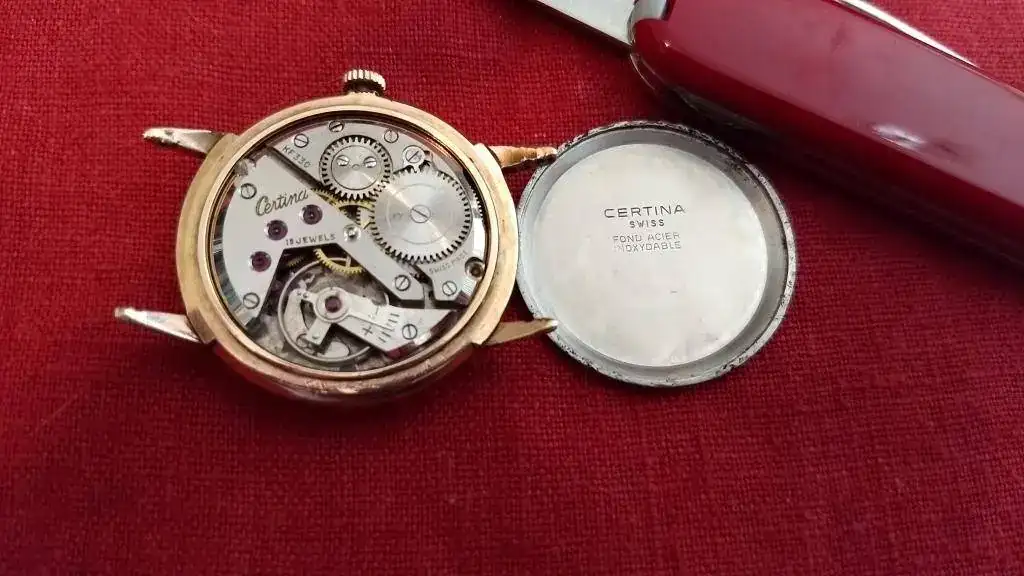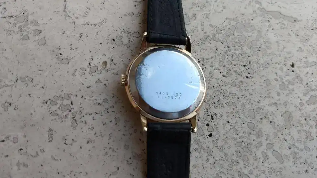 La caja es de 36mm sin corona (grande para la época) placada con 20 micras de oro rosa está en buen estado aunque con lógicas señales de su edad (55 años), sobre todo en el reverso.
