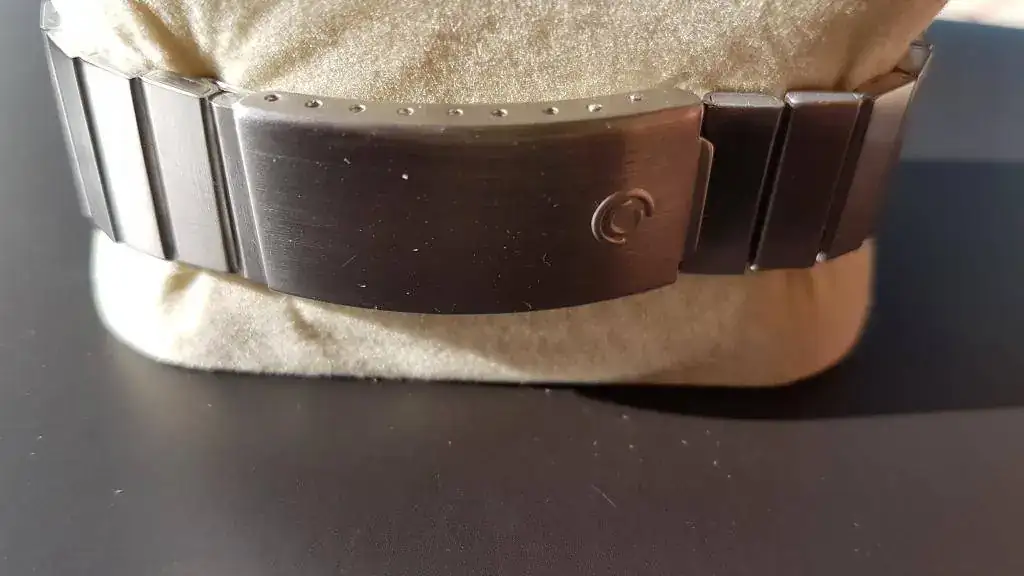 El brazalete, tiene un golpe en un eslabon; el resto y el cierre original, en muy buen estado.