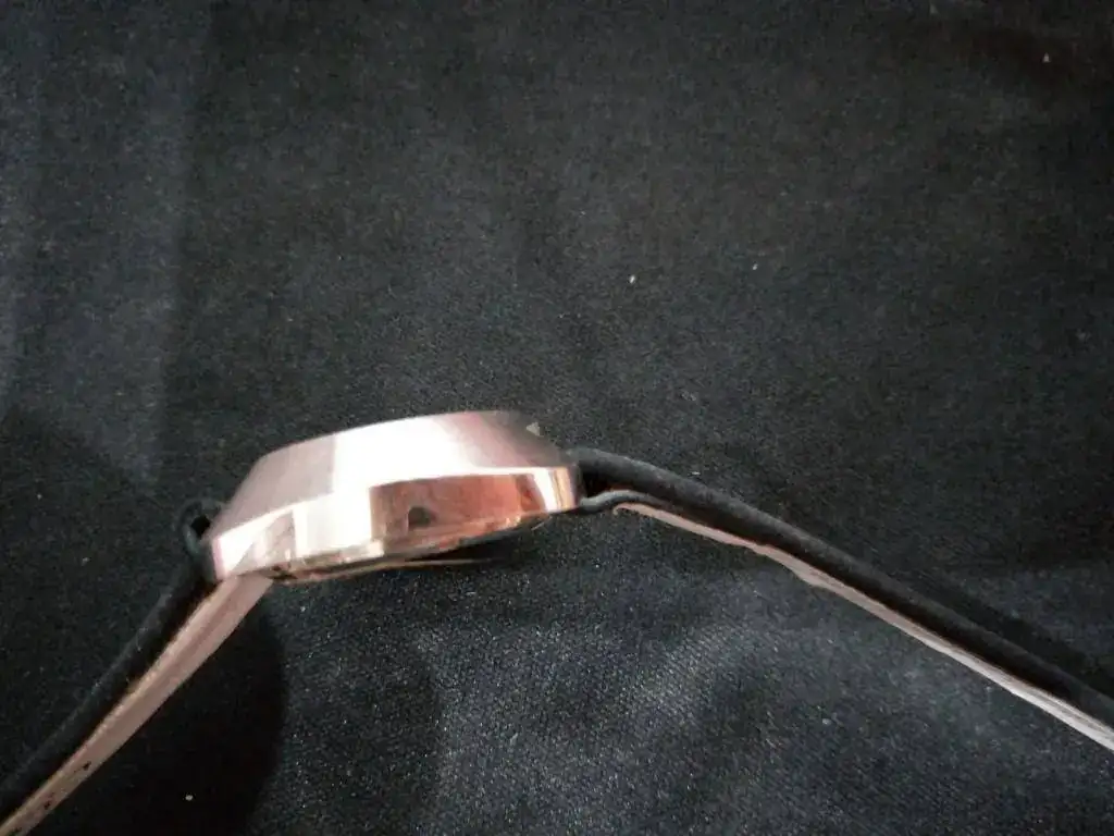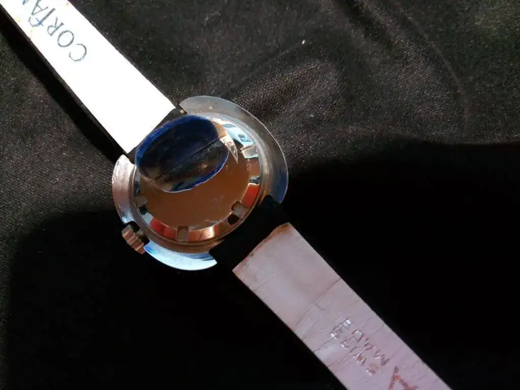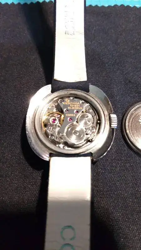 Caja : Caja y tapa trasera de acero inoxidable. Mide 26.5 mm sin corona. Corona a presión. 12 mm entre asas. La tapa trasera tiene marcas por haberlo abierto mal para las fotos del calibre.