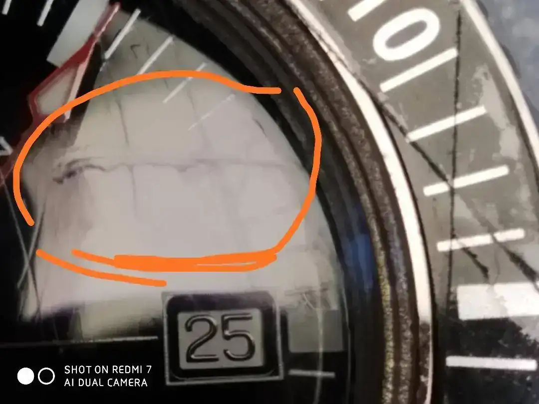 Rallote del 15 en el hesalite, no tengo ni idea de como fue, pero la cuestión es que ni polywatch ni nada,no cambiaré el cristal se quedara tal cual con su herida de guerra......