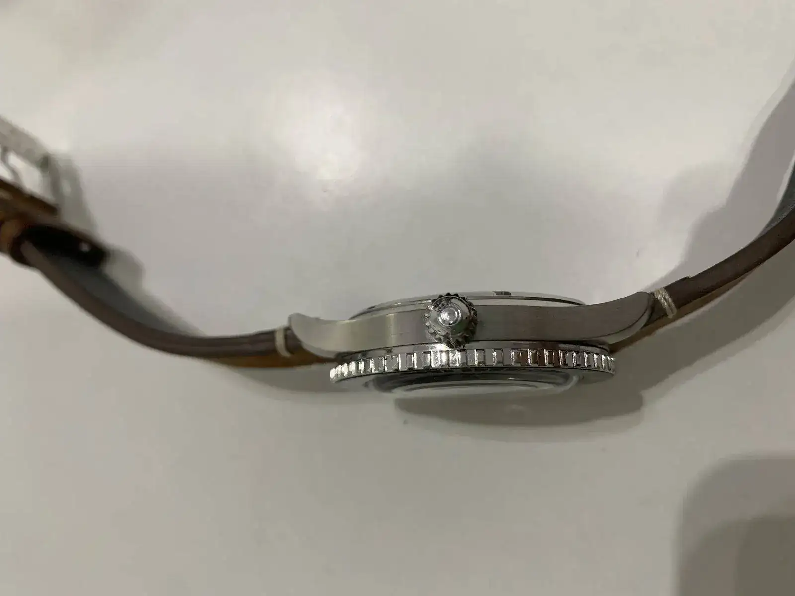 Brazalete: Correa cuero marrón y segunda correa nato. Ambas originales