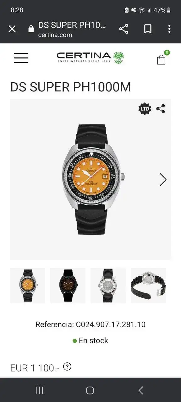 Yo tengo uno y es una maravilla un diver estilo vintageIntuyo que Certina no proporciona armis original para ningún Ph… No?