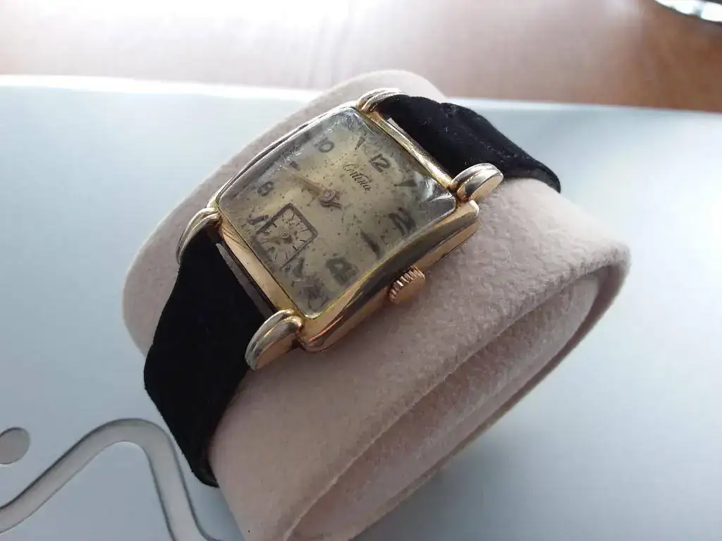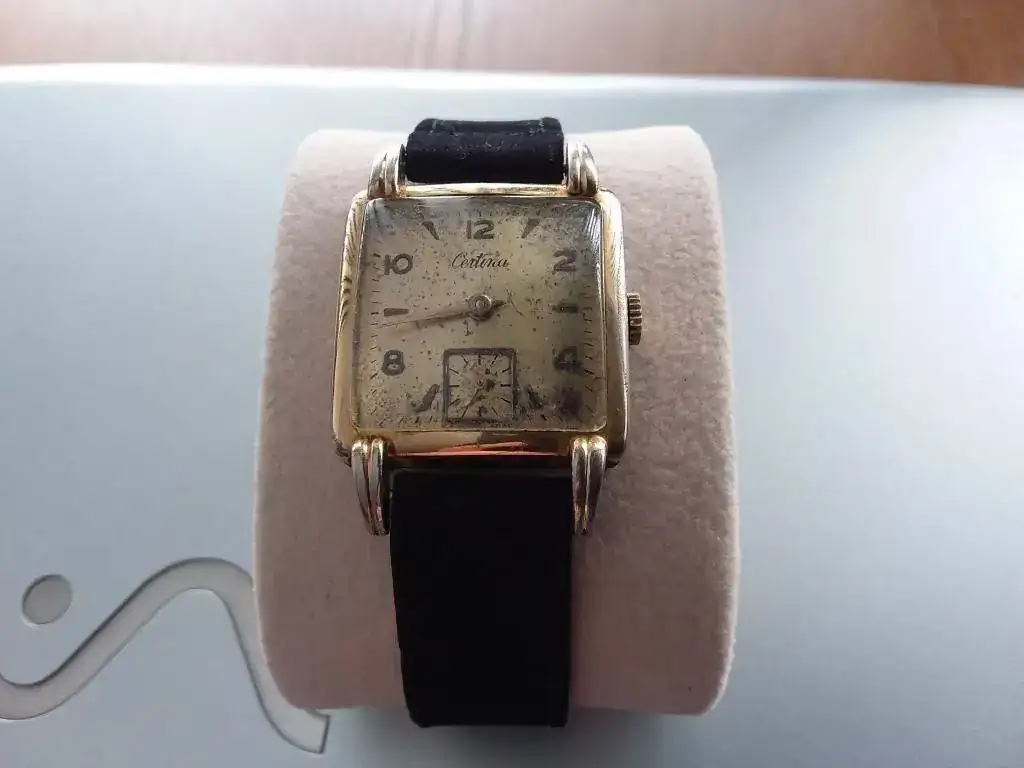 Muy buenas, propongo para cambio este reloj, que veo que no me pongo por si sale alguno que me guste y que me vaya a poner algo más. Se trata de un certina que debe ser de los 40, aunque seguro no lo sé, quizá sea anterior. Desconozco el calibre porque es de los que se abren por delante, y no he querido andar hurgando, aunque es muy probable que sea un kf300. No sé cuando se le haría la última revisión, pero convendria hacerle un mantenimiento (sabemos lo duros y fiables que son los calibes certina, pero este tiene ya bastantes años