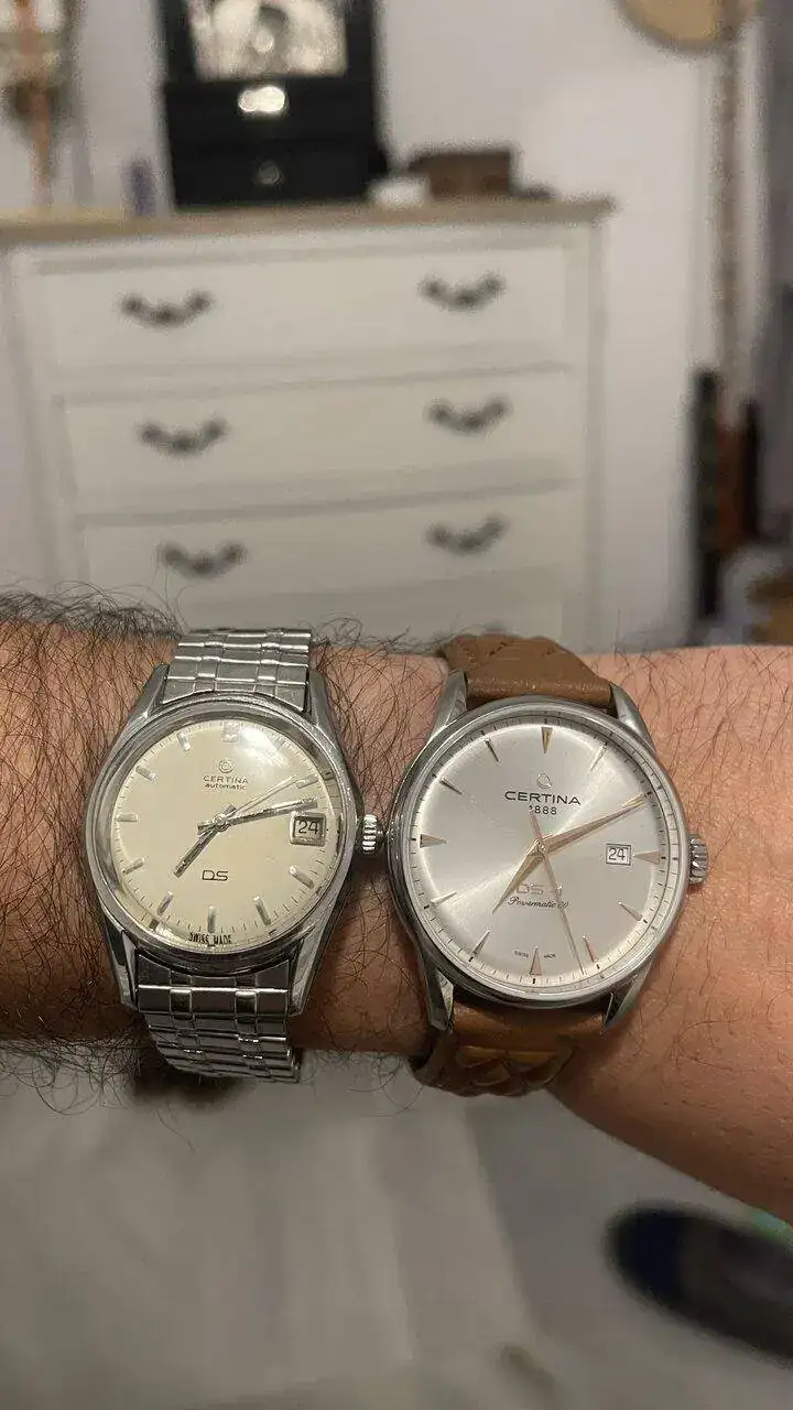 Certina DS1 (actual ) , me gustaría empezar diciendo que es un reloj irrenunciable para mí , fue el reloj que me regaló mi mujer para el día de nuestra boda, de intangibles va sobrado, llegó sin esperarlo, y fue así como empecé a bucear en la historia de la marca y del modelo , como consecuencia lógica, llegó más tarde el vintage , ya como compra propia.