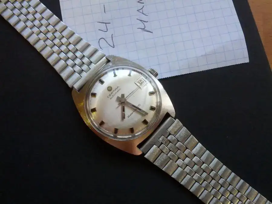 Hola amigos,vendo este Certina Waterking 215 para restaurar por 40 euros.Movimiento automático de 17 rubíes.Funciona pero recomiendo hacerle una limpieza.Tiene un tamaño de 34 mm.El plexi presenta una grieta entre las 8 y las 9.El envío lo dejo a manos de su futuro dueño pero prefiero entrega en mano en Madrid.