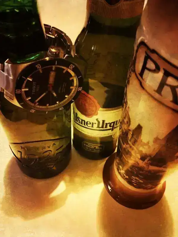 La Urquell en un viaje a Praga me encantó. Y en Eroski se encuentra. La 1925 es una maravilla y la Socarrada la tengo a nada de mi pueblo...Foto de esta tarde con dos de mis preferidas. He estado buscando por casa una Socarrada, que es la cerveza que más me gusta (hasta el punto de ser mi regalo de boda hace un añito y algo), pero debe ser que se han acabado. La Pilsner es original de la R. Checa, regalo de un amigo. Acompañando, el reloj que me acompañó a mí el día de mi boda, y que últimamente está saliendo más de lo que solía a pasear. Cada vez me parece más bonito el condenao.