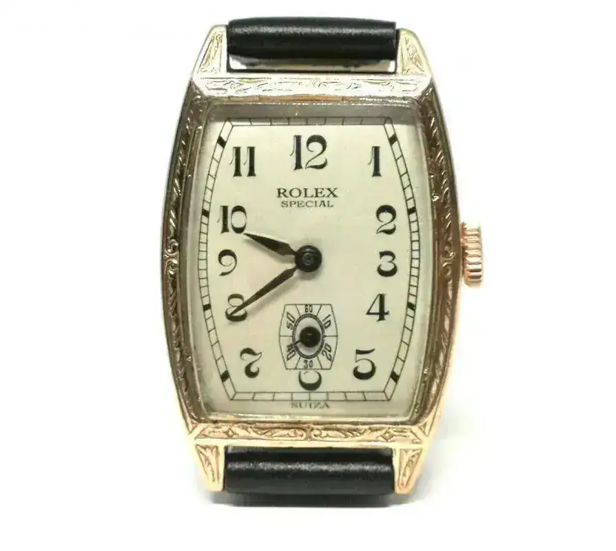 Os dejo uno de esos que inexplicablemente no han aparecido hasta ahora. Se trata de un Rolex art decó, restaurado. El vendedor es sincero y avisa de que la esfera está repintada. Nadie lo dirá a tenor del perfecto ajuste de la línea de minutos al contorno del bisel. Nótese el detallito de traducir Swiss Made a castellano, no sea que.