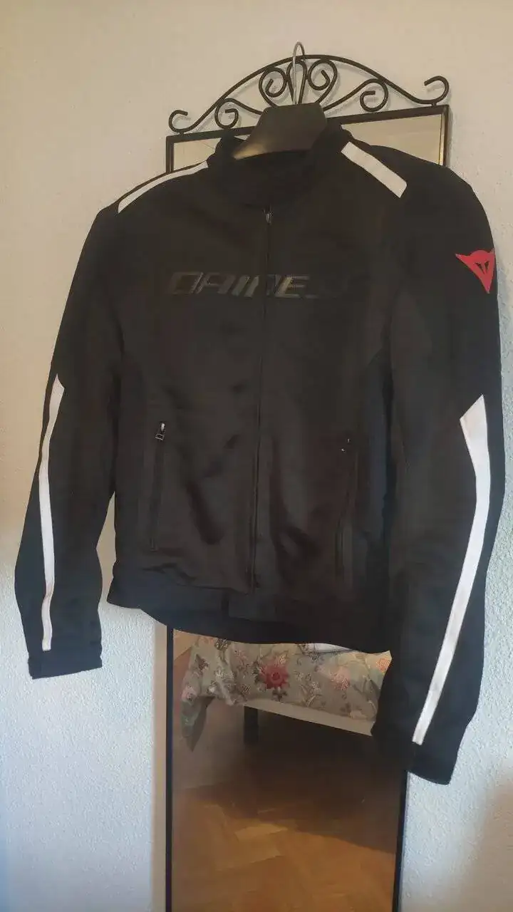 Precio 150 Euros. Comprada por mí en Motocard. El estado es "nuevo", no tiene ni una hora de uso. La vendo porque me está un poquito justa de tamaño (Es lo malo de comprar una chaqueta, dejarla guardada un tiempo e ir mucho al gimnasio). No tiene ni un solo roce o mancha, está igual que nueva. Ha salido de casa una sola vez. Dispone de forro interior desmontable y protecciones desmontables en hombros codos y antebrazos. Está en garantía. Dispongo de factura de compra. Precio no negociable.Talla 52. Mido 183cm y peso 85 kg.