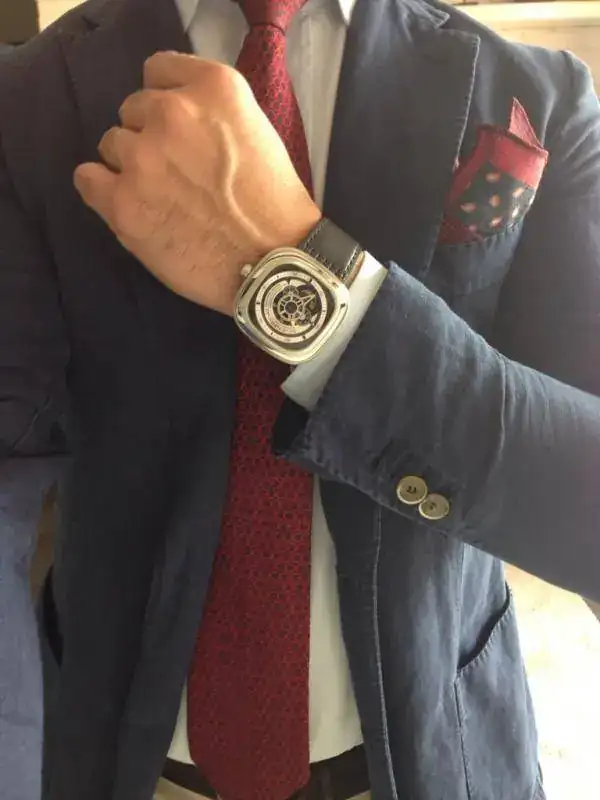 Americana de algodón de Gucci color camel (aprovechando los últimos días de sol que pueda quedarnos en el norte) con pantalón de algodón color crudo de Trussardi, pañuelo en el bolsillo (comprado en Buenos Aires, hace unos añitos), para dar ese contrapunto elegante al conjunto sport, y en línea con ello: Zenith Annual Calendar Special Edition.