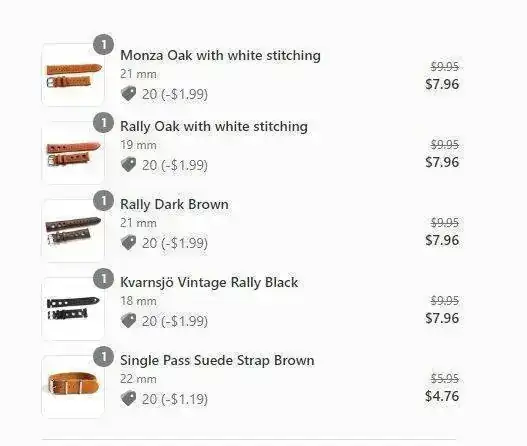 Además de los descuentos que se encuentren en cada correa, cheapestnatostraps sigue haciendo el 20% adicional, si se compran cinco correas o más.