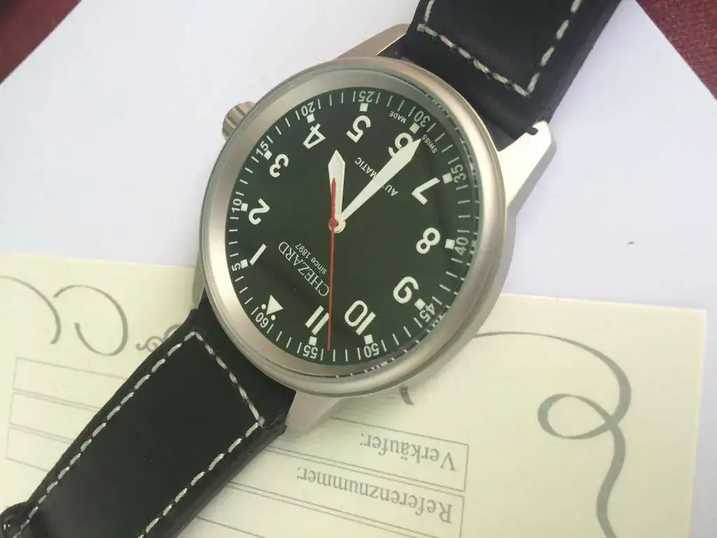 Hoy también le toca el turno a este estupendo reloj estilo Pilot. Movimiento Automático ETA 2846. Caja de acero de 45 mm. Correa de piel de alta calidad y hebilla firmada.