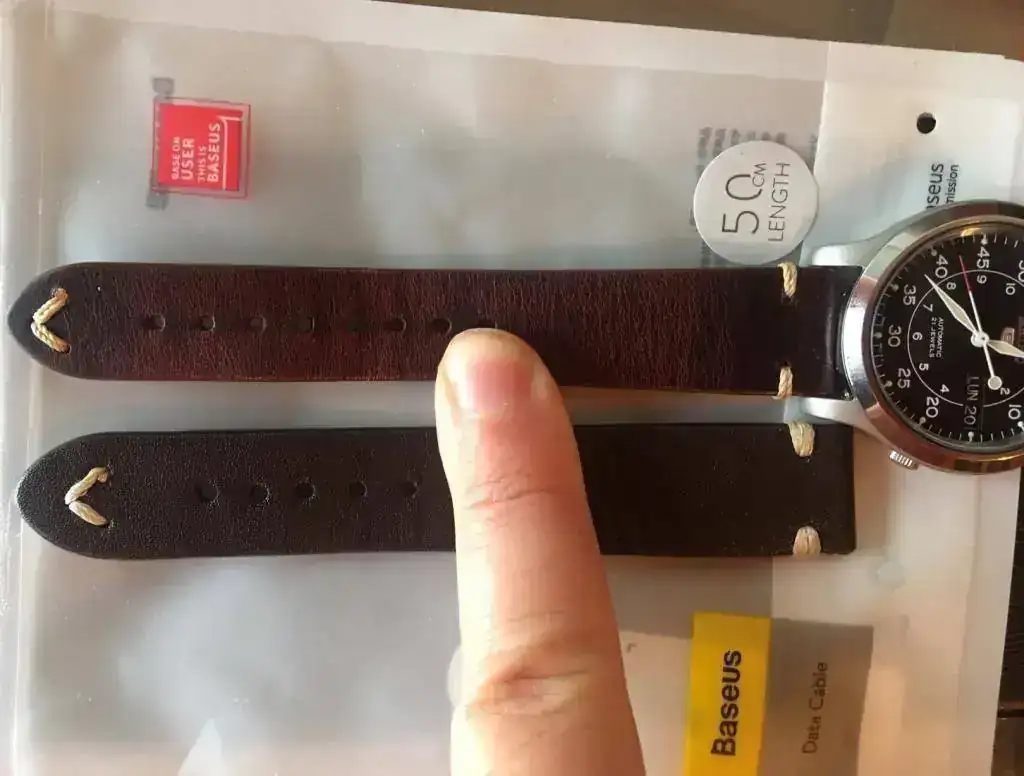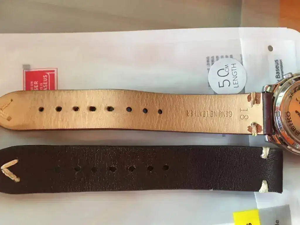 Pasaron unos días (no muchos) y decidí que al 1963 le quedaría muy bien una correa como la del Seamaster, así que entré en Cheapestnatostraps dispuesto a comprar una Premium Classic Oak en 18mm (La del Omega es de 19 y no podría usarla en los dos relojes), mi gozo cayó en un pozo al comprobar que no había existencias de 18 en la web sueca, maldije mi suerte y con cierto enfado comencé a curiosear otra vez en Aliexpress, eso si, teniendo presente que no iba a encontrar nada parecido a las Premium suecas que tan buen sabor de boca me dejaron.