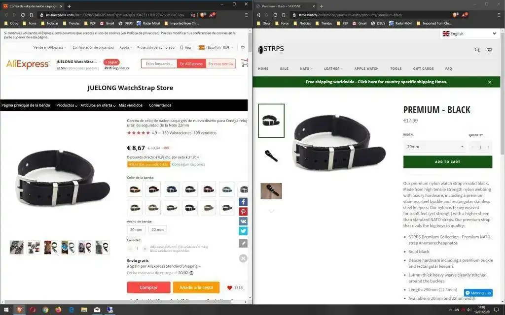 Total, que he llegado a la conclusión de que en dos ocasiones he pedido correas a dos tiendas de China, con tan mala suerte de que ninguna de las tiendas tenía stock, pero cuídan tan bien a sus clientes que en ambas ocasiones las tiendas de China decidieron pedir a Cheapestnatostraps unas correas similares, y que se las enviaran a China en Jet privado para acto seguido reenviarmelas a mi.
