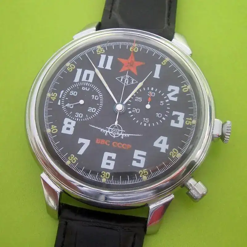 This chronograph was made at the highest possible quality that the soviet chasprom could produce. The production cost was so high, that the factory soon dropped the chronograph, and continued producing simple stopwatches (Ahat, etc.) instead."