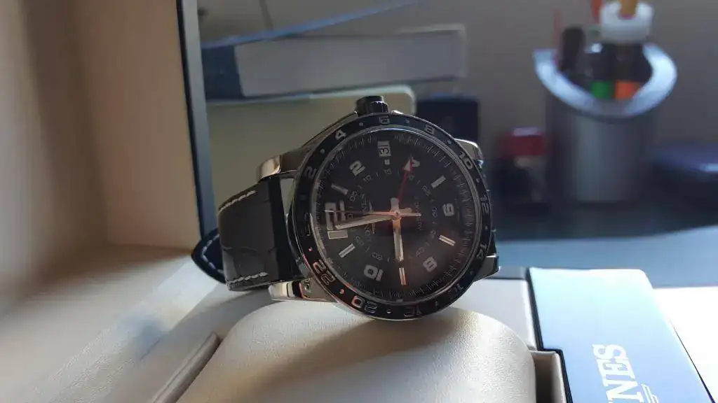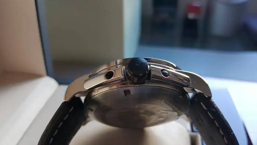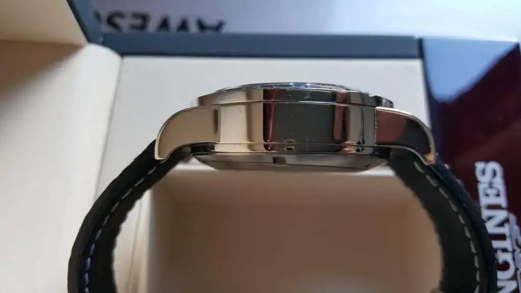 Estado: Leves microarañazos (sin uña) en el pulido a espejo a la izquierda del reloj, tambien alguno leve en la zona derecha; asas, cristal, y trasera (conserva el plastico) impolutos. Agujas bien definidas y sin arañazos de fabrica(ultimamente es normal en los relojes suizos de gama media-alta localizar sorpresitas...); no se observa nada alarmante en el bisel, algun microarañazo igualmente, sin golpes ni toques, todo debido al pulido a espejo.