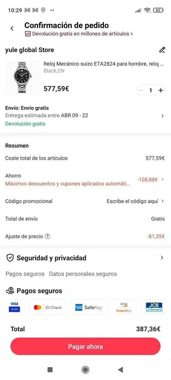 Lo sé, pero es que veo bastante diferencia de calidad, acabados,… entre ambas marcas. Basándome en el Pagani y el SteelDive que ya tengo, si bien es cierto que no tanta como para justificar el encarecimiento desmedido de ésta última los últimos meses.Tienes el Pagani a buen precio.