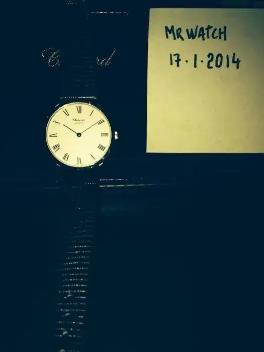 El reloj es el modelo clásico de Chopard ultra plano de vestir con movimiento sellado Chopard de carga mecánica manual.