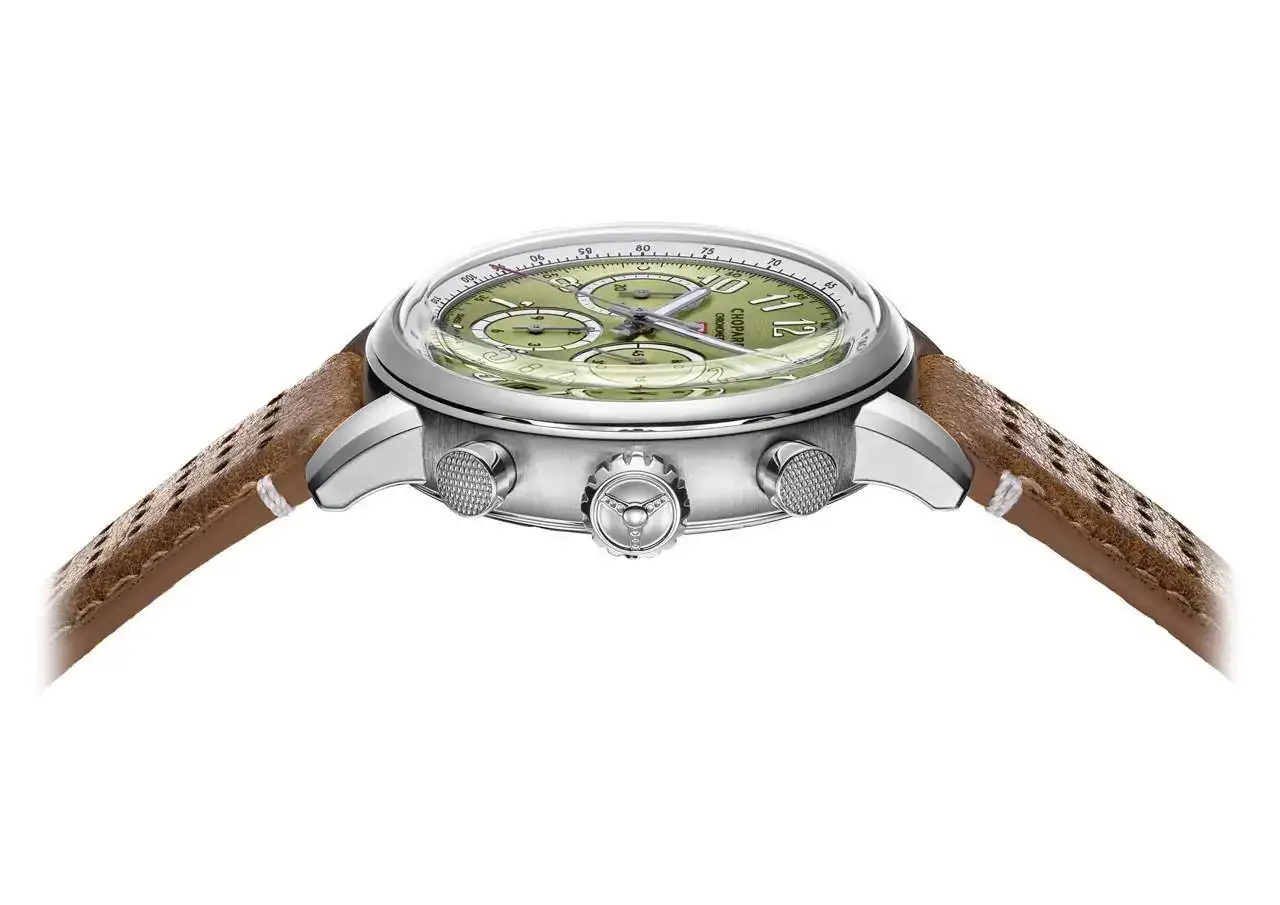 Una de las principales características de la nueva edición de los relojes Mille Miglia Classic Chronograph en comparación con las ediciones anteriores es que la caja es más pequeña y corresponde mejor a la estética de los coches históricos inscritos en la carrera. Con un diámetro de 40,5 mm, el reloj es menos invasivo durante la conducción y siempre se ve bien, ya sea con ropa de noche o un traje de carrera.