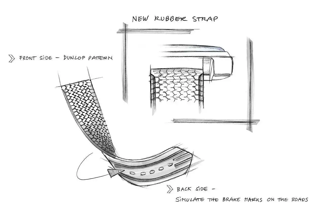 Correa de caucho inspirada en los neumáticos Dunlop de los años 60 (dorso con