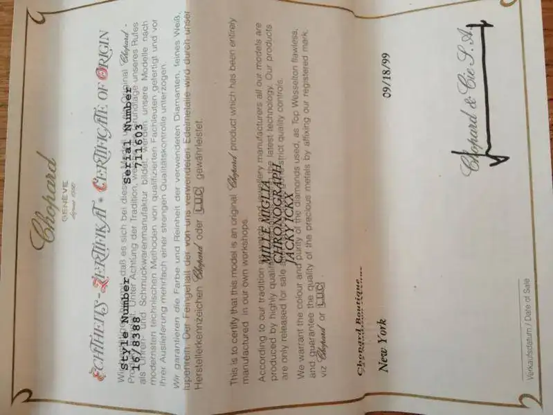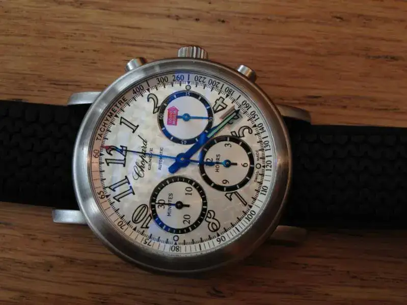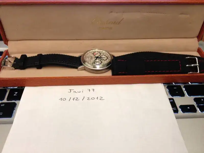 Pongo a la venta esta pieza muy especial. Se trata de un Chopard Mille Miglia edición limitada Jacky Ickx con referencia 8388 del año 1999. Es un reloj precioso y muy exclusivo. Muy difícil de encontrar. Ahora mismo no estoy seguro de si es 38 ó 39 mm. Mucho más pequeño que los Mille Miglia actuales. Tengo la caja y los papeles originales de su compra en Nueva York.