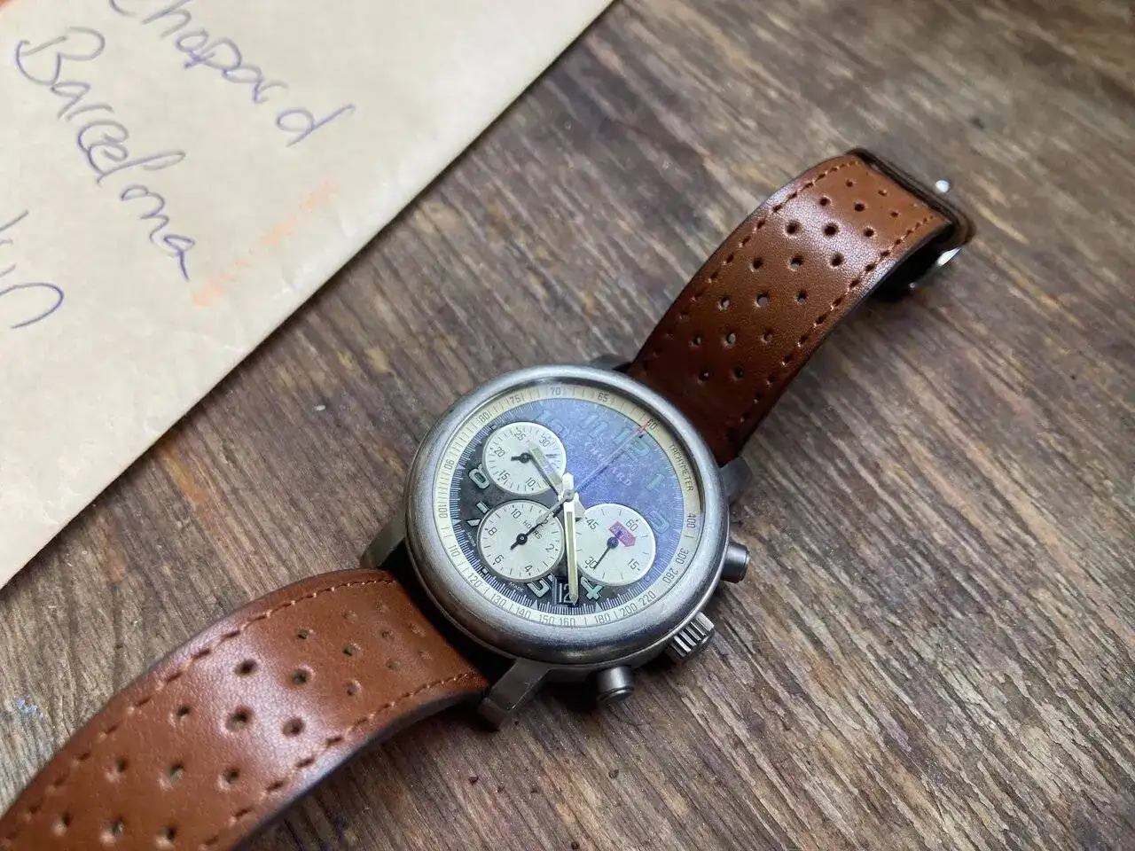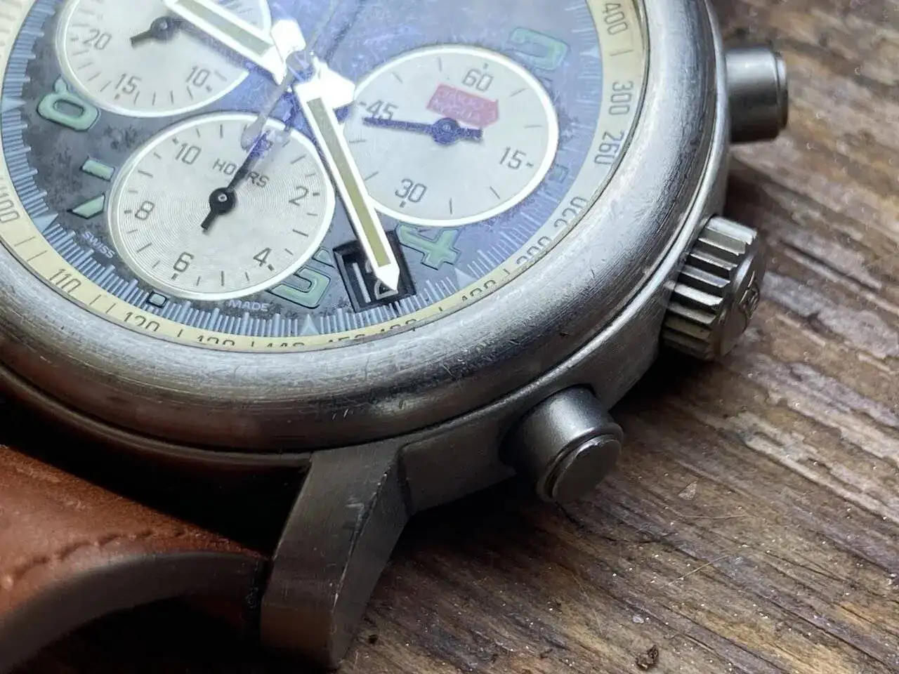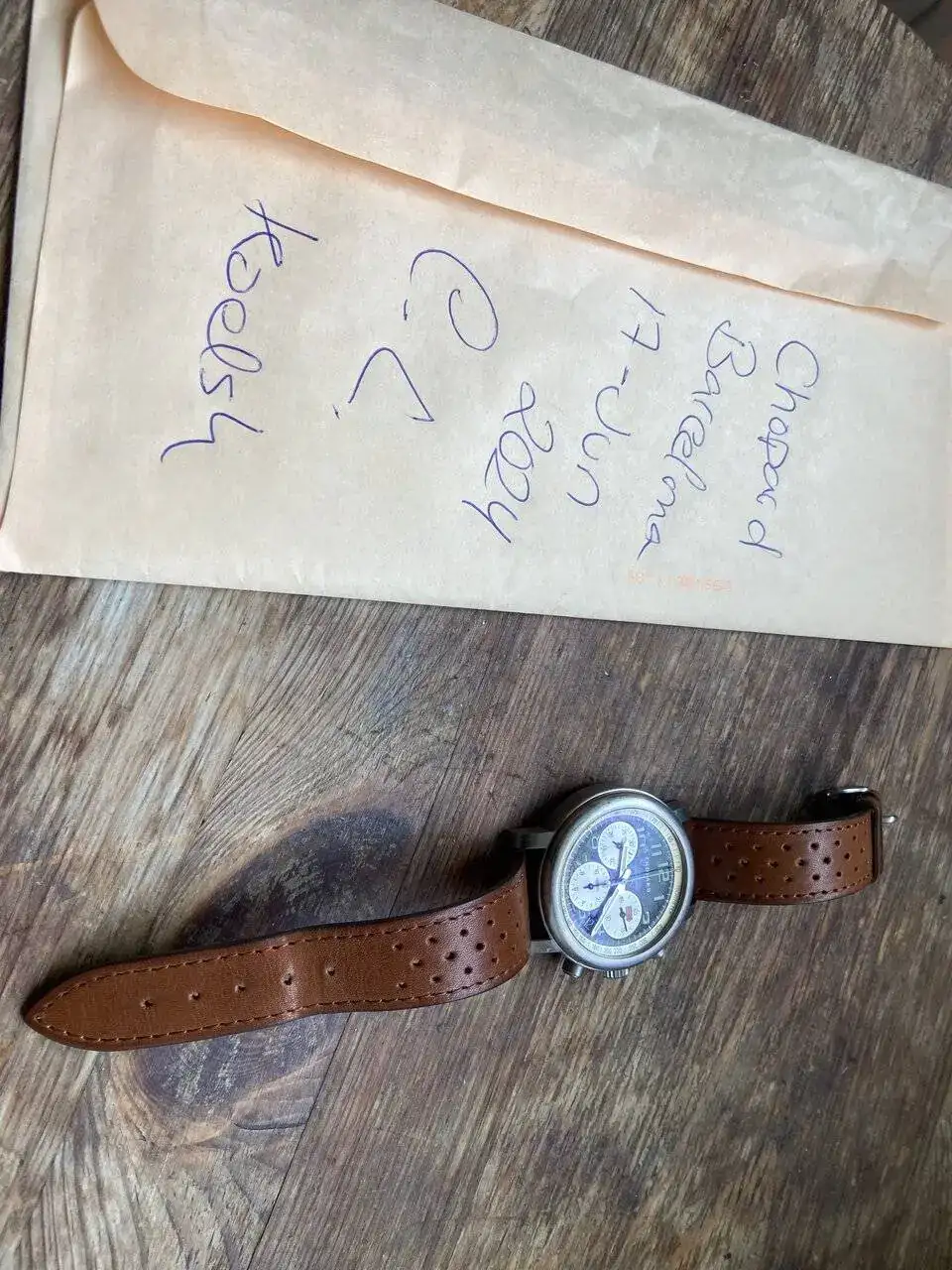 El cronógrafo funciona, pero la aguja del segundero al dar al Stop no termina perfectamente en las 12. Ya lo compré así. Para mí nunca fue un inconveniente porque no uso cronógrafo pero es necesario que el que lo compre sea consciente de esto. De ahí el precio 👍