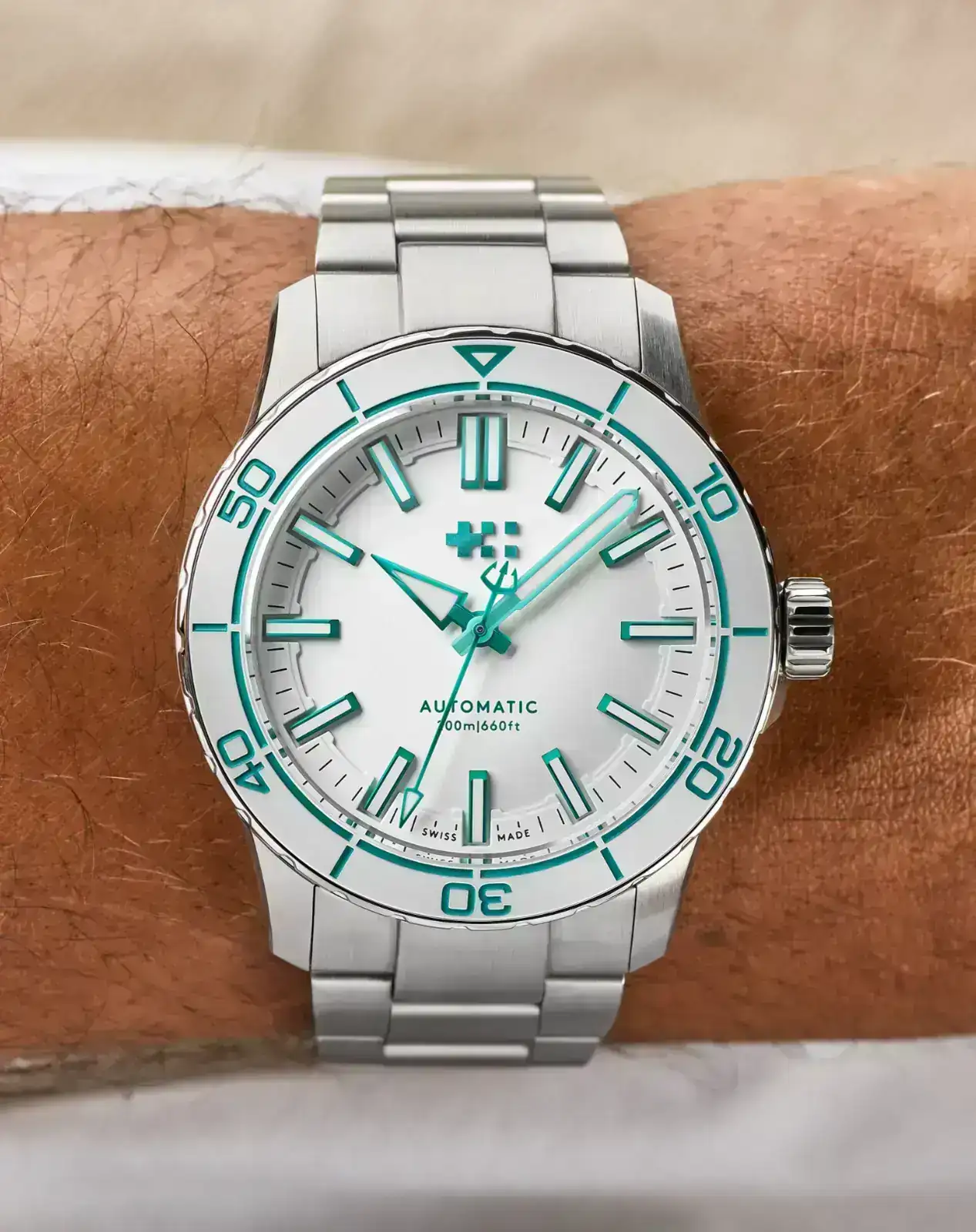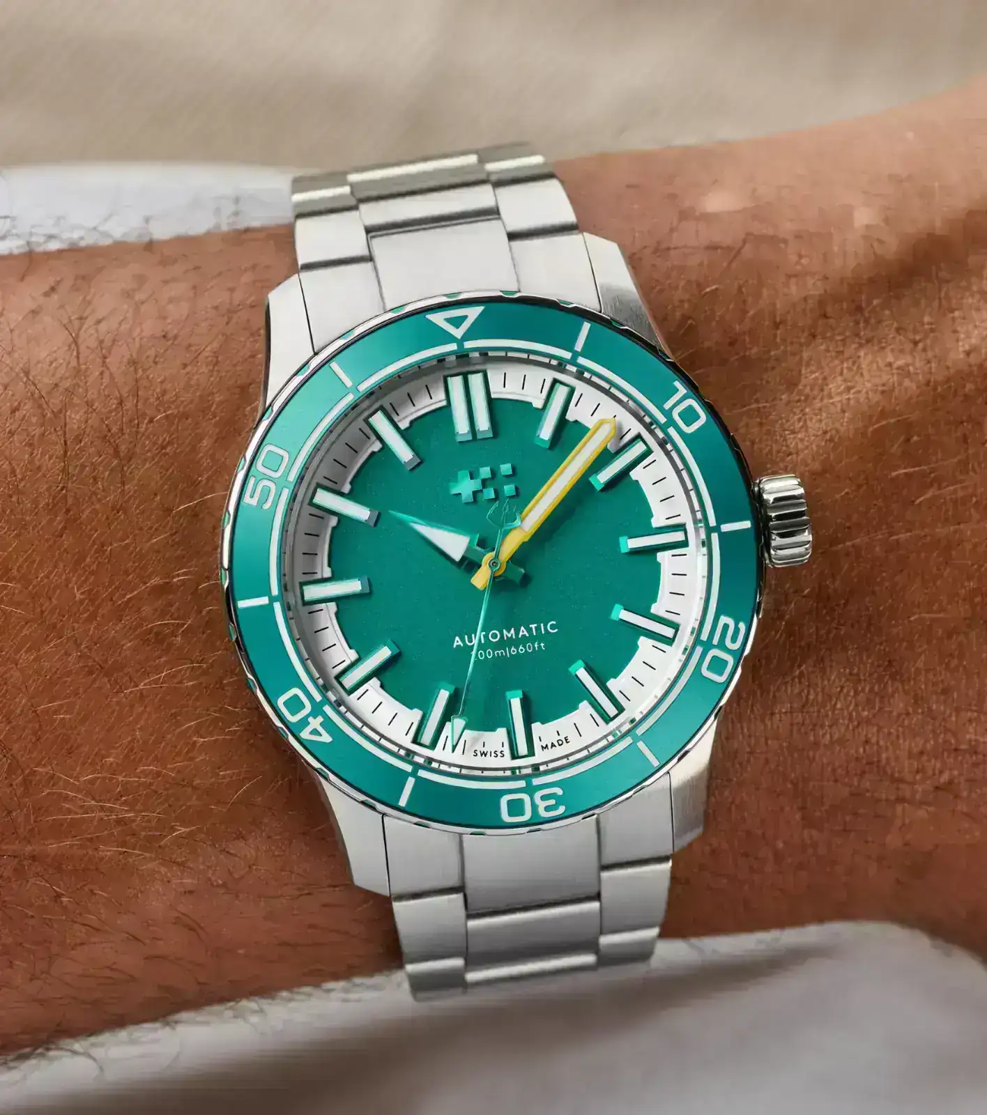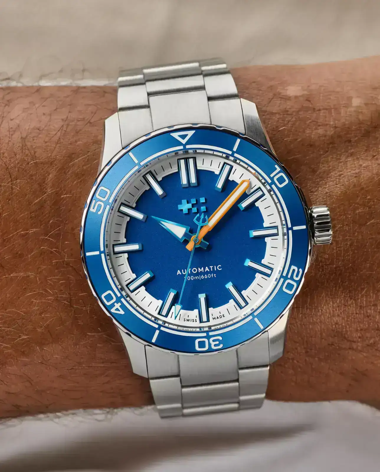 Nuevos Trident Reef. Muy veraniegos, movimiento sw200, sin fechador, en dos tamaños (41 y 44mm). No me queda claro si el bisel es cerámico o de aluminio o depende del modelo. 895€ con correa de caucho y 1095 con brazalete. Por criticar algo, un poco aburrido de las escasas 38h de reserva de marcha del sw200