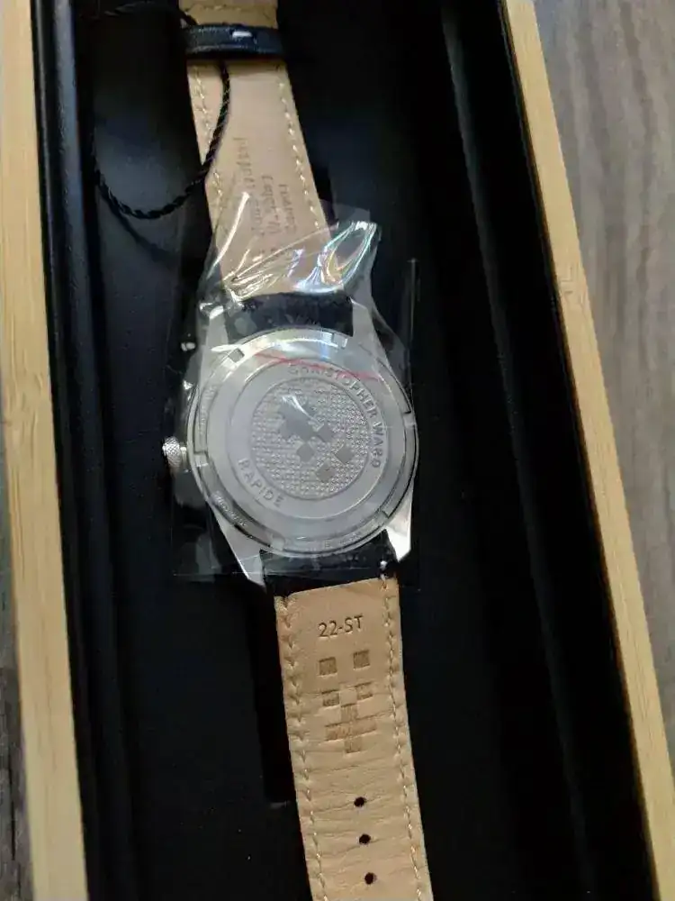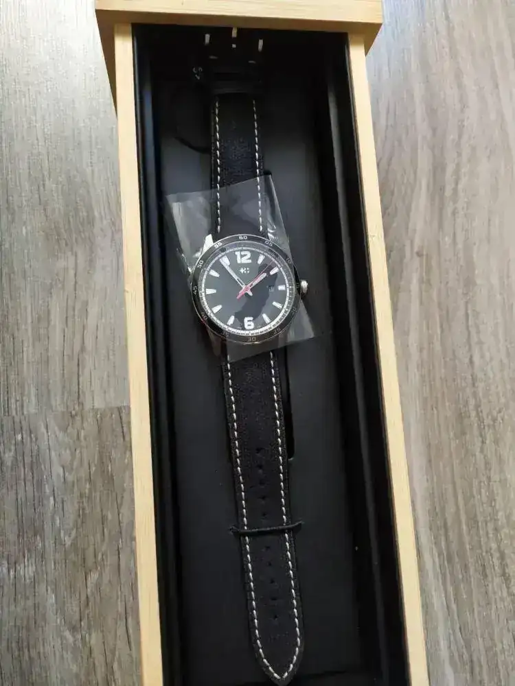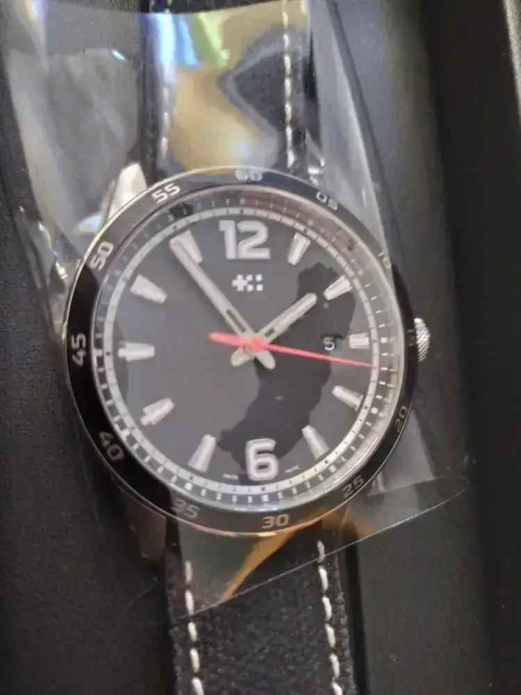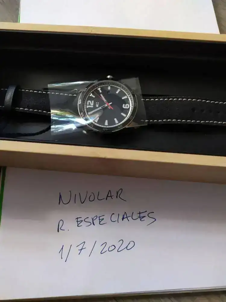 Procedente de regalo, a pesar de que me encanto nada mas verlo, al segundo supe que mi muñeca no toleraria esos 44mm, asi con mucha pena pongo a la venta este reloj precioso de inspiracion racing, no se si puedo decir a estrenar, ya que tiene una puesta de 15 seg...con todos los plasticos, cajas, papeles,...NO CAMBIOS POR FAVOR