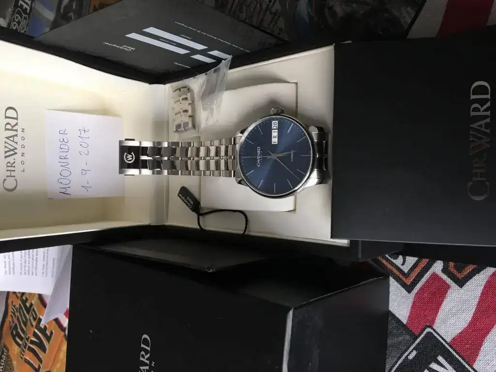 Hola a todos, pues saco a la venta este christopher ward c9 big day date blue, el reloj tiene un par de meses, esta sin estrenar, solo le ajuste su armis y me le puse en casa para comprobar su funcionamiento, simplemente le saco a la venta porque creo que no le voy a usar, fue una compra compulsiva.