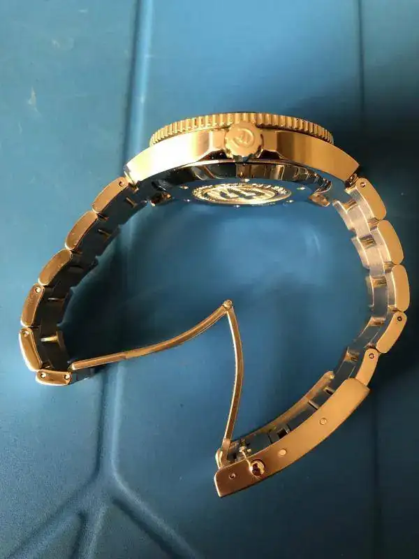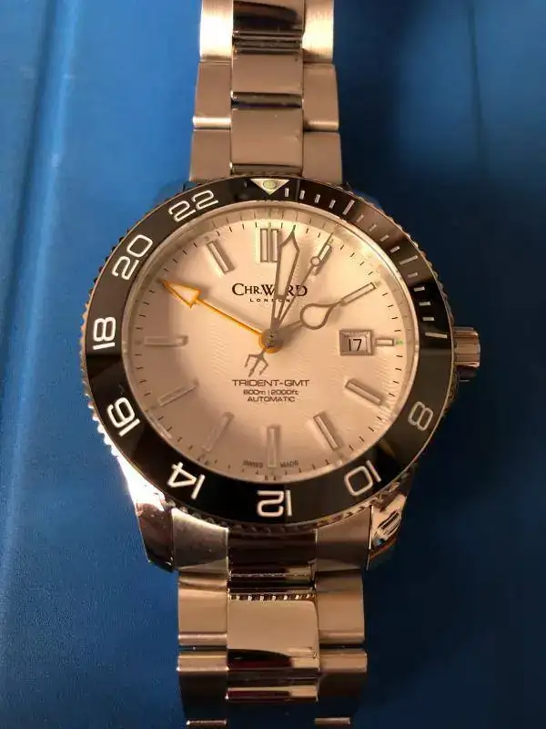 Hola, pongo a la venta mi Chr Trident Gmt, el reloj creo que es bastante conocido y es una pasada pero me he propuesto una reduccion bastante drastica, las caracteristicas son suizo, calibre eta 2893- 2, zafiro, bisel ceramico, 600m, corona roscada y algo a destacar es que lleva montado el armis del modelo nuevo, con microajuste manual. Las condiciones del reloj son perfectas, caja, cristal y bisel inmaculados y las pocas marcas que tiene se ven en el armis, los eslabones centrales son pulidos a espejo y presentan algun mocropelo al trasluz, lo unico destacable esteticamente es que en el cierre del armis tiene algo asi como una marca de agua, no se explicarlo mejor, pasas la uña y no se nota rayado, pero la marca ahi esta, es muy superficial, pero esta.