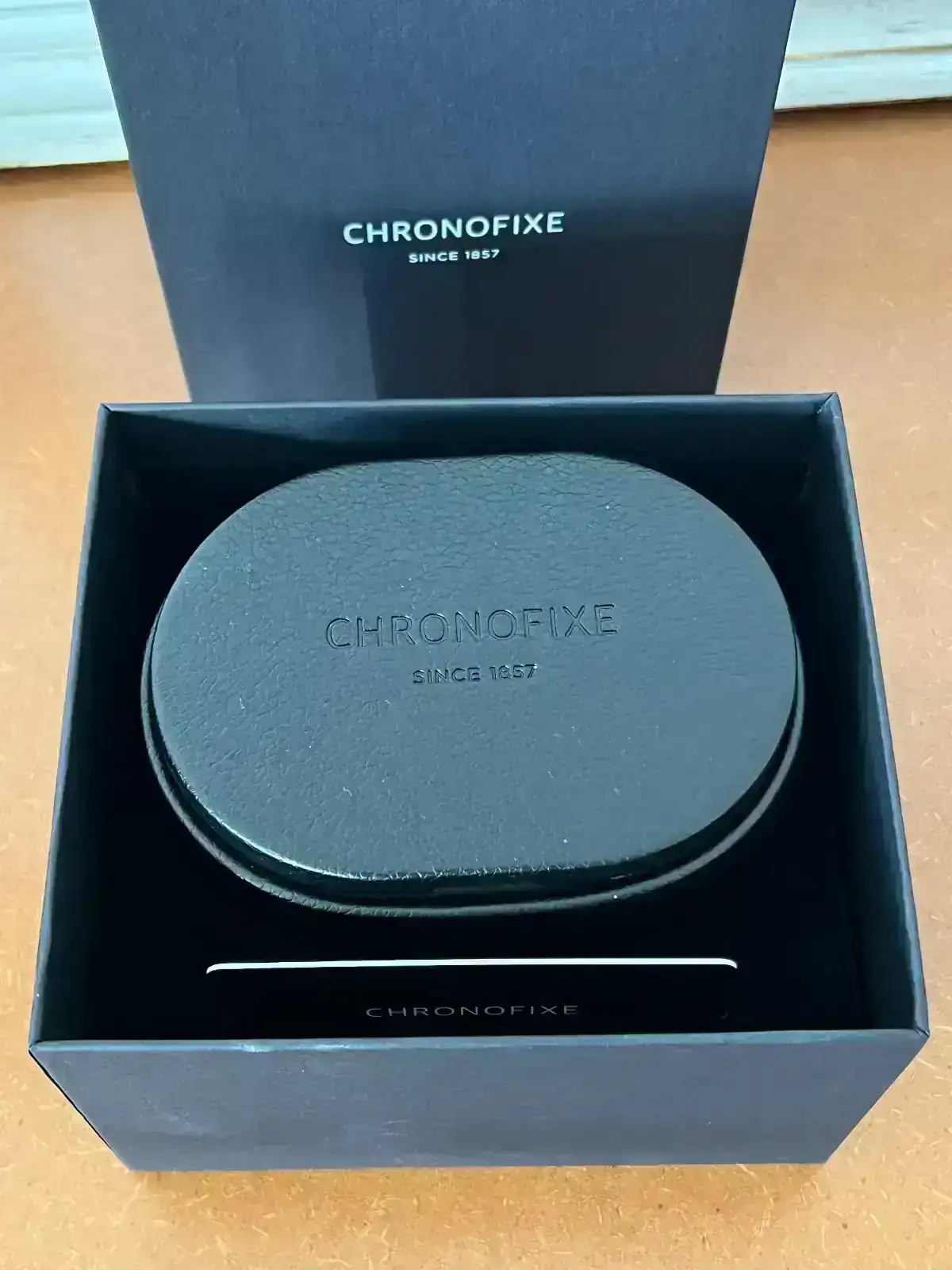 El reloj viene presentado en una caja de cartón externa, y en el interior trae una caja tipo símil piel plásticosa, en el cual incluye un estuche donde va el reloj, y una tarjeta que viene a ser el equivalente a la garantía.