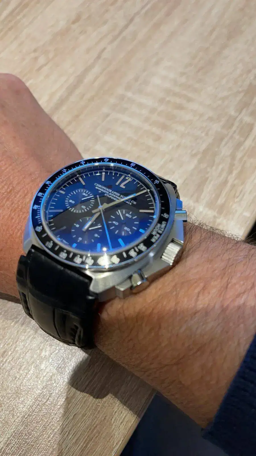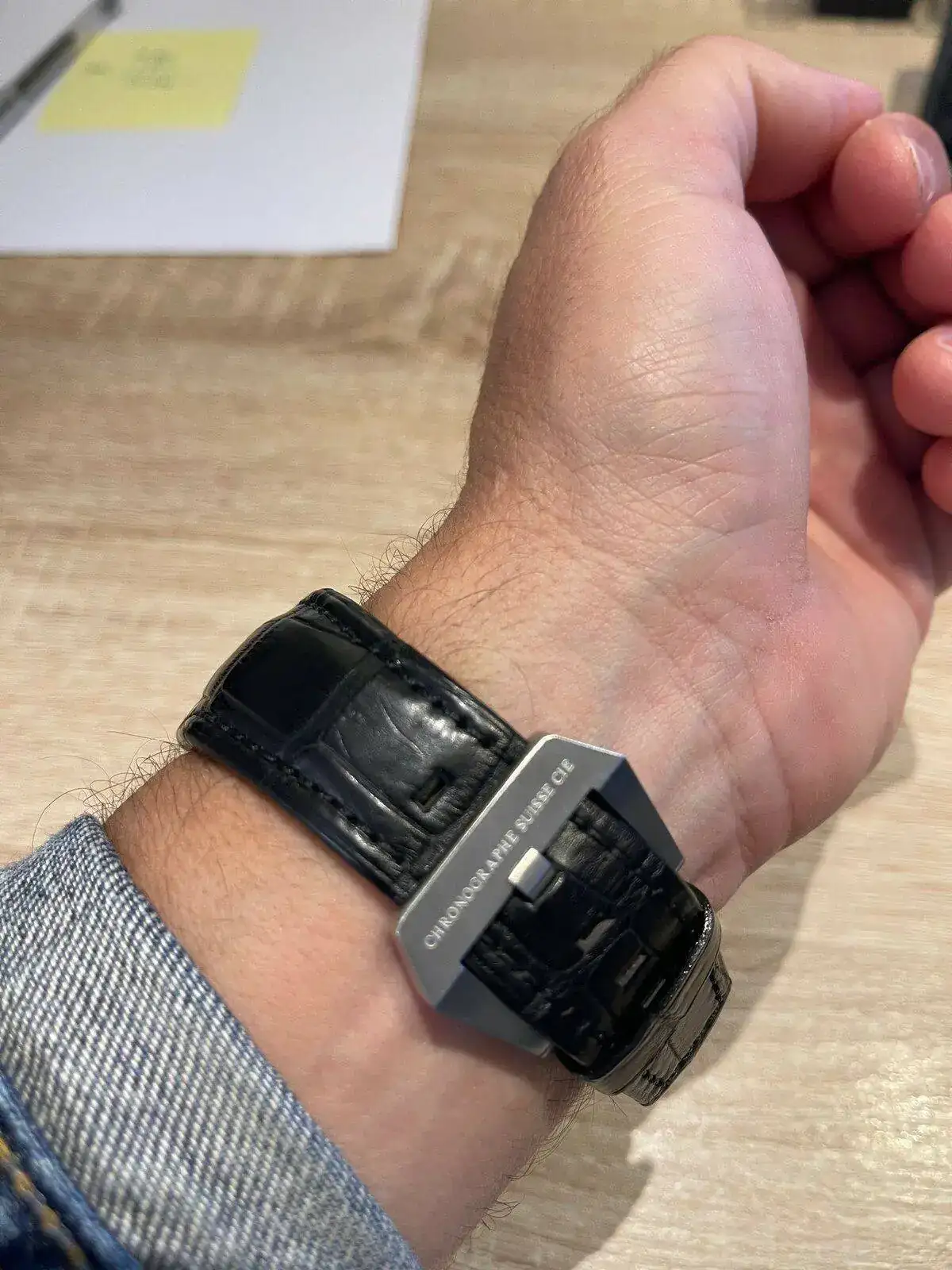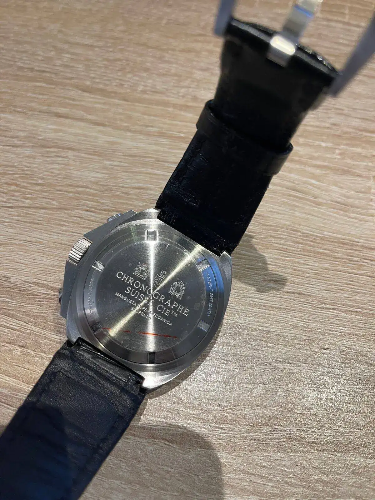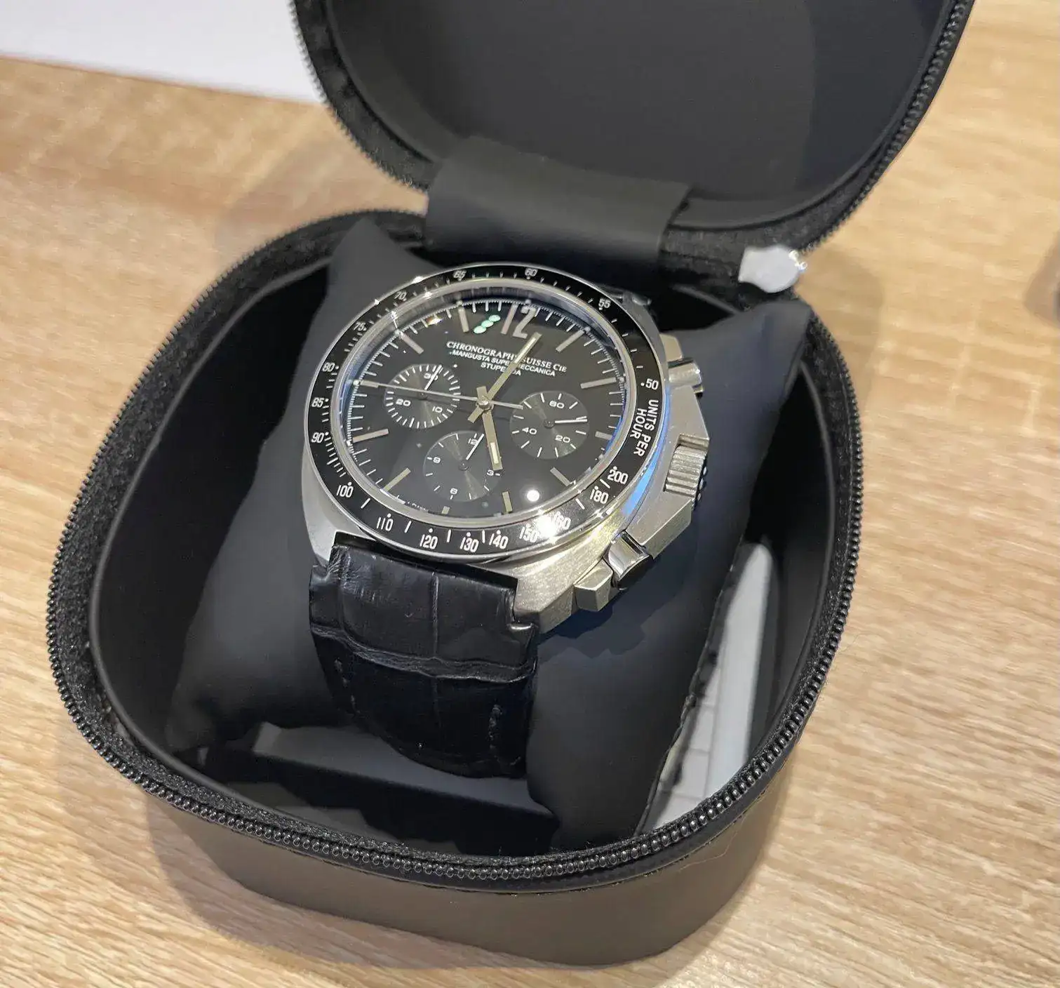 Pongo a la venta mi reloj automático Chronographe Suisse Mangusta Supermeccanica Stupenda (ms-STU263-bk/bk) de segunda mano, con caja de acero inoxidable de 45mm, rodeando una esfera negra en una correa de aligátor negra con hebilla de espiga de acero inoxidable. Las funciones incluyen cronógrafo, horas, minutos y segundos. Este reloj no viene con caja ni papeles. Reloj de máxima calidad a precio de derribo.