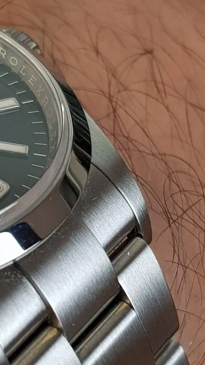 Mira que me gusta mi Sinn pero una de las cosas que buscaria en un Explorer son los acabados y la excelencia en detalles insignificantes como estos. Entiendo que Rolex en tema de holguras y tolerancias no debe admitir duda....El diseño es así, pero no en todos los modelos es igual el escalón. Ej. Pongo foto del Explorer I. De hecho está casi a ras el asa con el eslabón lateral y el central más levantado. Lo cierto que nunca había reparado en ello.