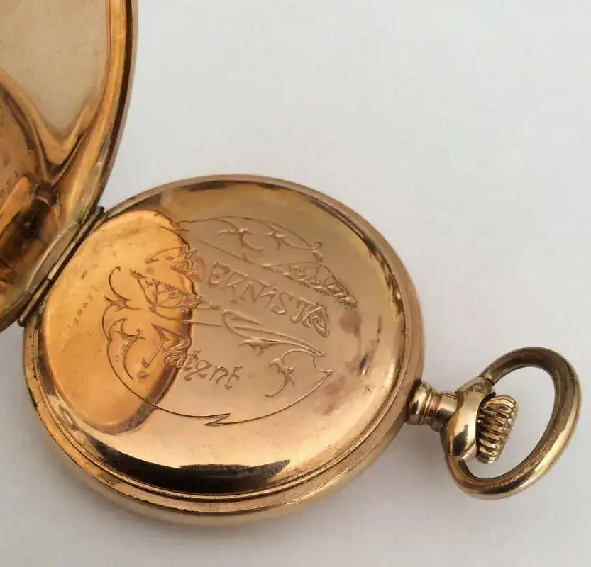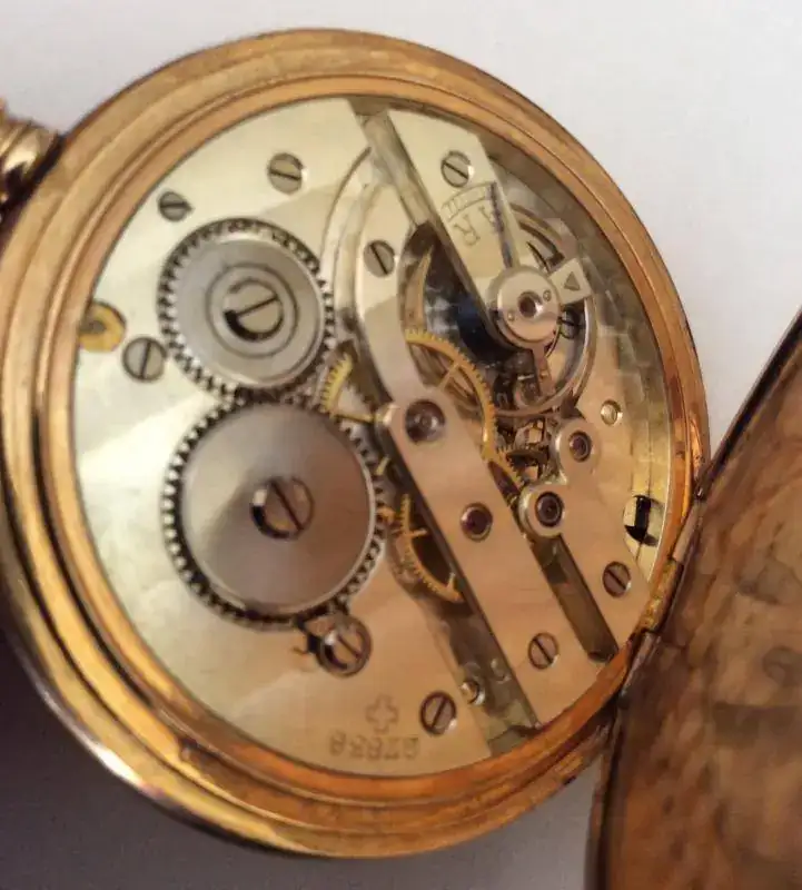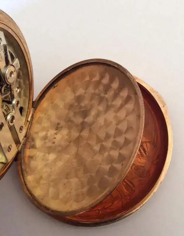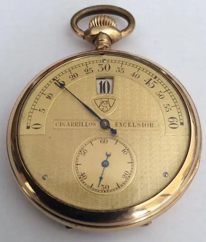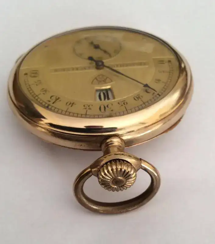 Reloj de bolsillo con horas saltantes,y minutero retrógrado,chapado en oro.