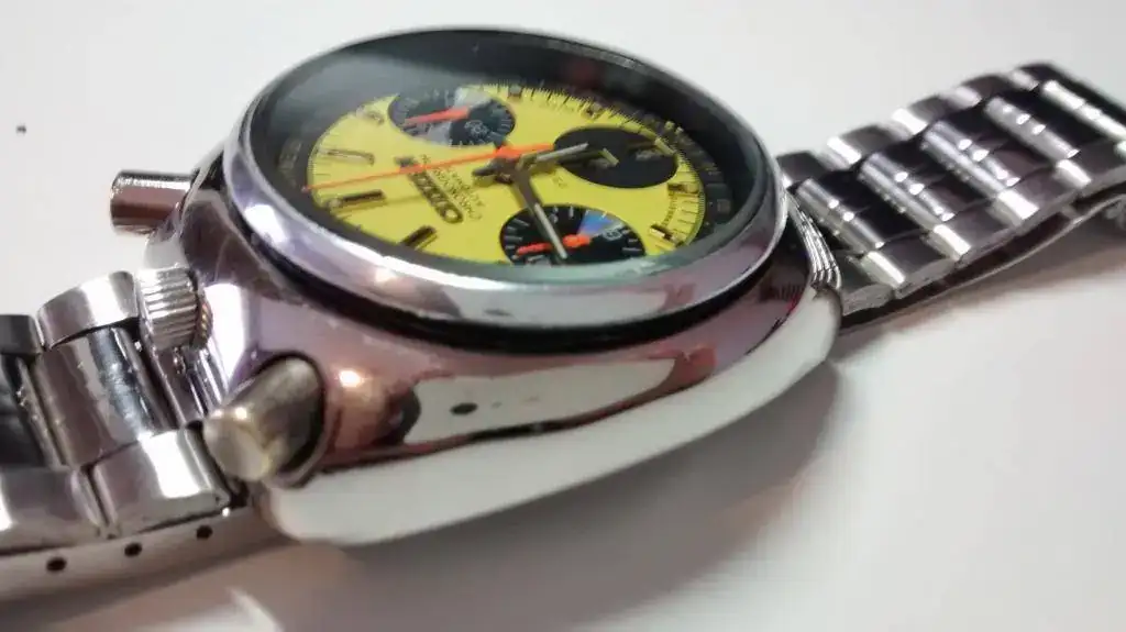 La última vez que lo estuve usando, hace varios meses, tendía a adelantarse cosa de 1 minuto al día y no puedo asegurar que acumule carga correctamente, pero sí lo suficiente como para que siga andando toda la noche. Tal vez le venga bien una revisión, no sé si alguna vez se le ha hecho. El crono marcha bien y resetea a cero sin problemas, la función "flyback" (reseteo y puesta en marcha automática con un solo toque del pulsador derecho) característica de este reloj va perfecta. El fechador tiene los días de la semana en inglés y kanji. Se lo compré a un compi del foro que apenas lo tuvo en su poder.