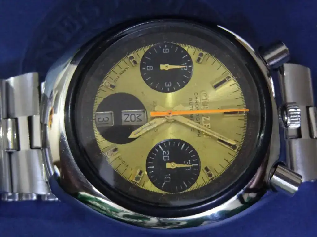 Buenas noches, hace ya algo mas de 11 meses, que no lo uso este reloj y he pensado sacarlo a la venta por falta de efectivo (no cambios).El reloj ha funcionado correctamete con algun minuto de retraso al dia aproximadamente, pero nada de importancia.La reserva de marcha iva bastante bien y no me dio ningun problema. El crono marcha batante bien (botenes algo duros pero dentro de lo correcto) (el funcionamiento es de parada y puesta en marcha automática con un solo toque del pulsador izquierzo, la puesta acero con el boton dercho pero lo hace a tramos con dos o tres pulsaciones recobra la posicion de las 12 sin problemas ) . El fechador tiene los días de la semana en inglés y kanji. Estéticamente está muy bien como muetra las fotos.Dos correas mas de regalo una roja y otra negra (disculpar por no poner foto de las correas, a los interesados ya se las pasare).Posibilidad de hacer la entrega en mano si se es de barcelona.Gracias por la atención y al espacio prestado en este foro.