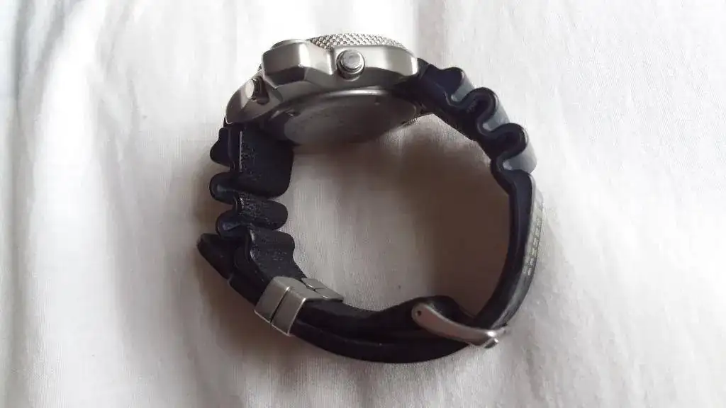 Reloj usado pero en buen estado, señales de uso q creo se ven claramente en las fotos, a destacar un pelo en el cristal y dos microbollos en el sensor q no afectan en nada al uso y puesto ni te das cuenta.