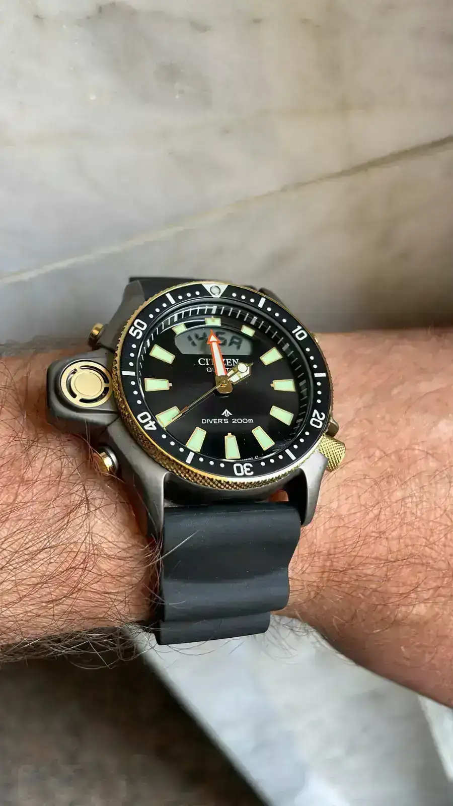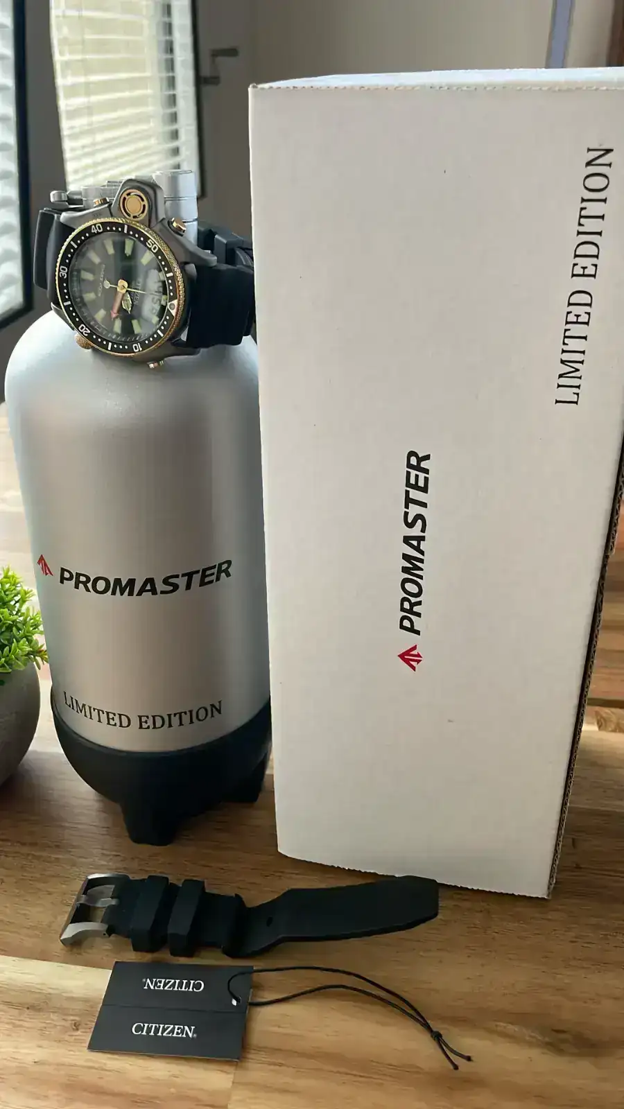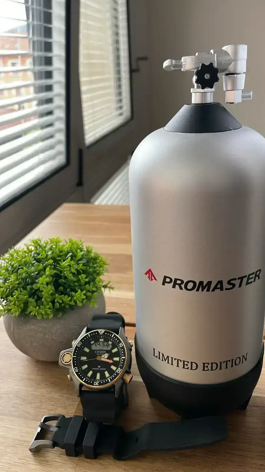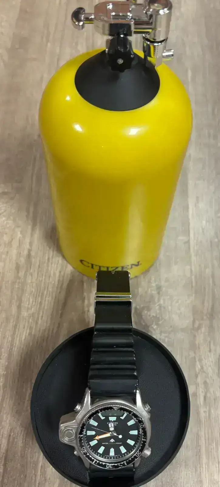 Un pregunta compañero:Unas fotos para abriros el apetito, a mi es lo q más me gusta, ver el bicho aunque sean fotos. El mío es probable que sea el primero que se haya vendido en el estado, llegó ayer y hoy lo he recogido y estrenado. No sé qué depara Citizen en un futuro, pero veo difícil q esto se repita. Por cierto, este modelo nace en 1985 y en mi opinión es el último Diver Tool Watch, dado que a continuación vinieron los ordenadores de buceo y aún y todo, sigue siendo un magnífico Diver Watch bien solo o como Back yo. Creo que aprox. 10 años después sale su revisión, es decir, el reloj que ha llegado hasta hoy y este 40 aniversario es la ostia de bonito se mire por donde mire.