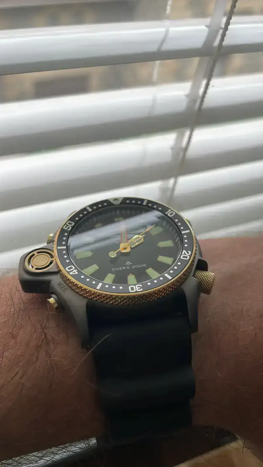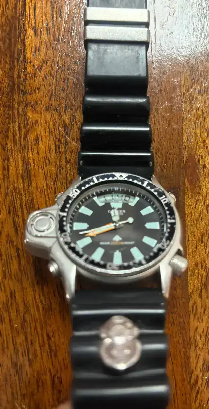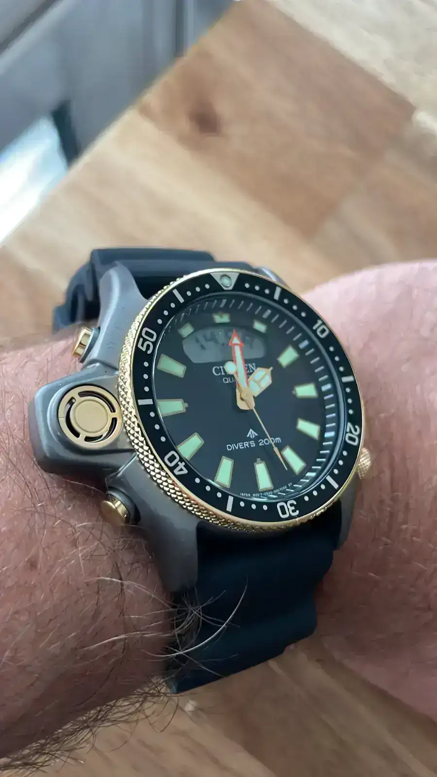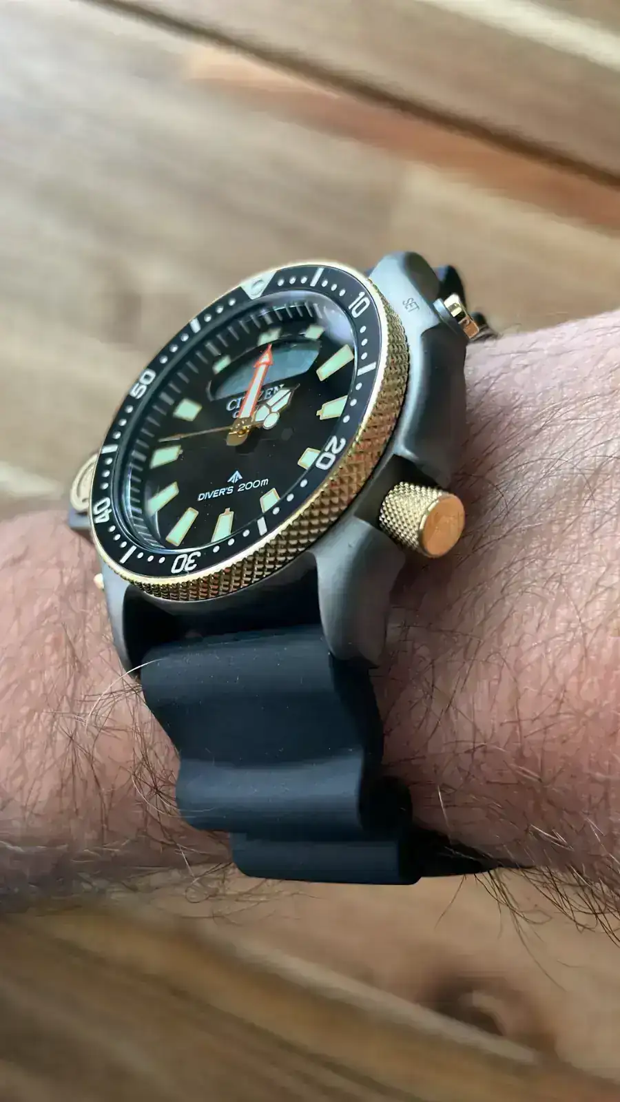 Un pregunta compañero:Unas fotos para abriros el apetito, a mi es lo q más me gusta, ver el bicho aunque sean fotos. El mío es probable que sea el primero que se haya vendido en el estado, llegó ayer y hoy lo he recogido y estrenado. No sé qué depara Citizen en un futuro, pero veo difícil q esto se repita. Por cierto, este modelo nace en 1985 y en mi opinión es el último Diver Tool Watch, dado que a continuación vinieron los ordenadores de buceo y aún y todo, sigue siendo un magnífico Diver Watch bien solo o como Back yo. Creo que aprox. 10 años después sale su revisión, es decir, el reloj que ha llegado hasta hoy y este 40 aniversario es la ostia de bonito se mire por donde mire.