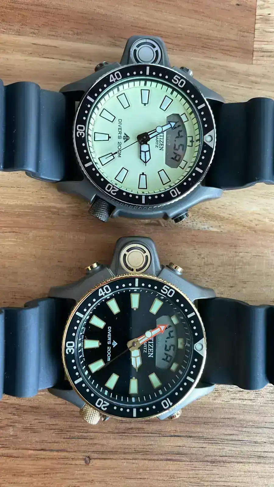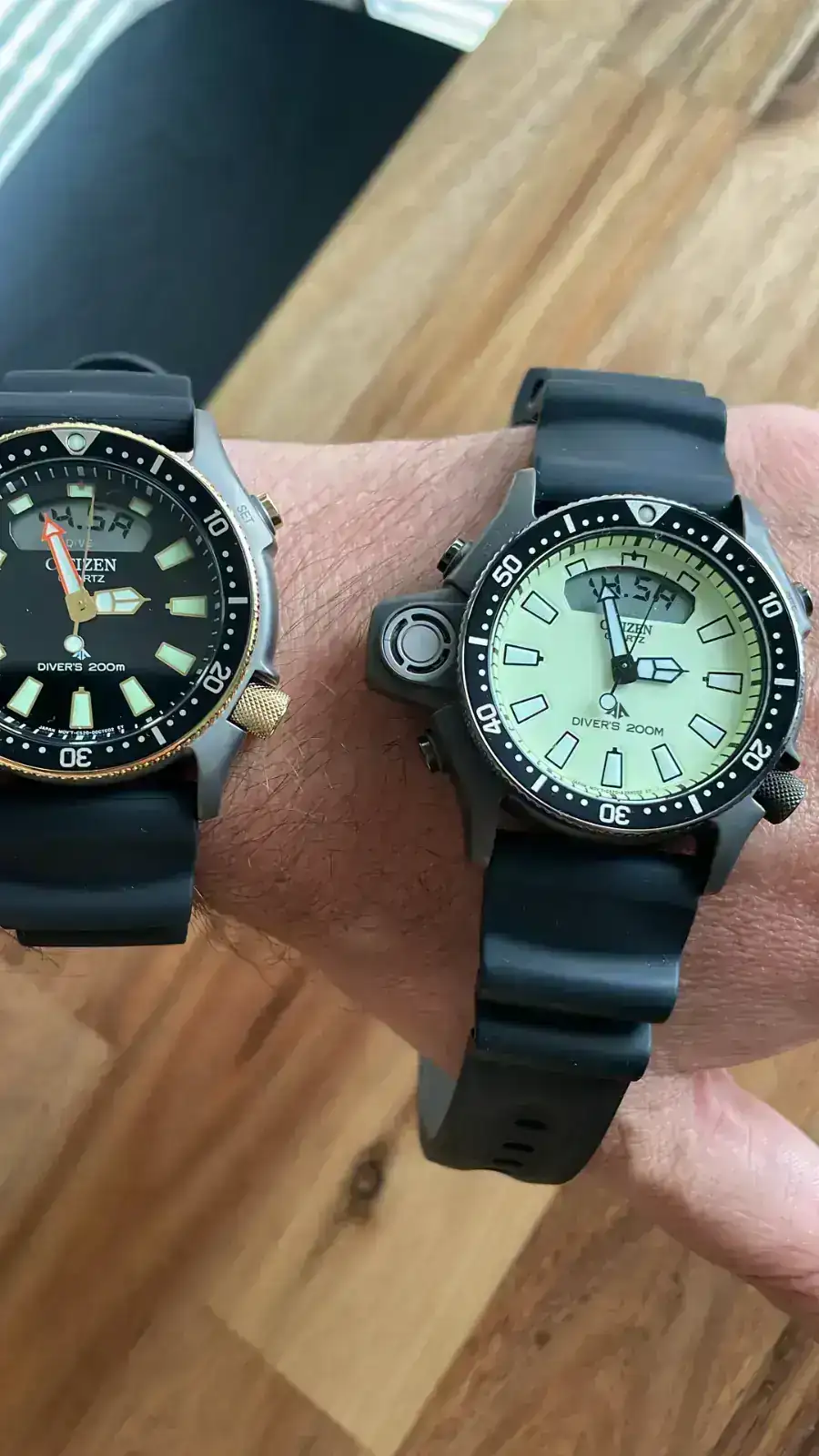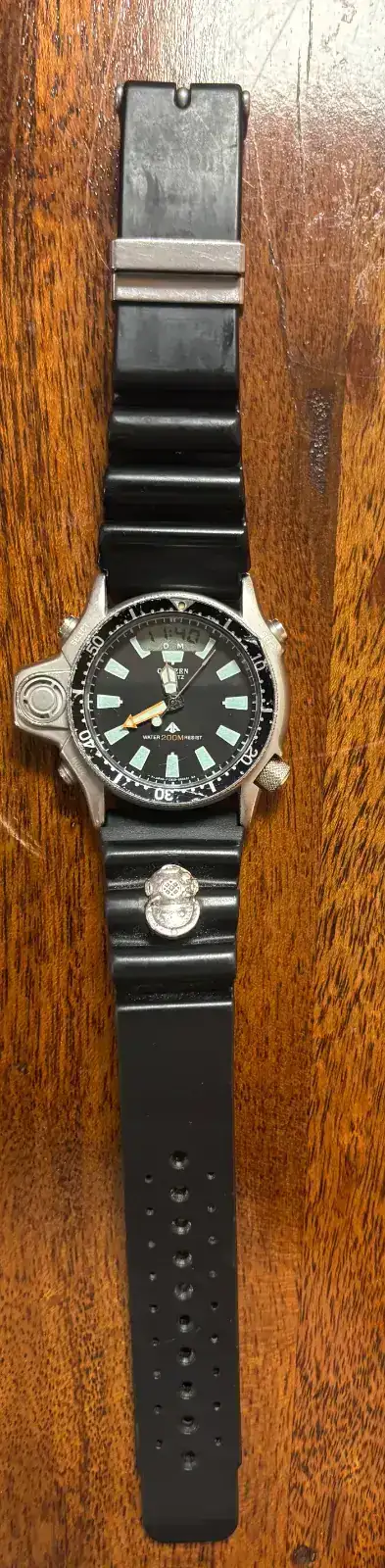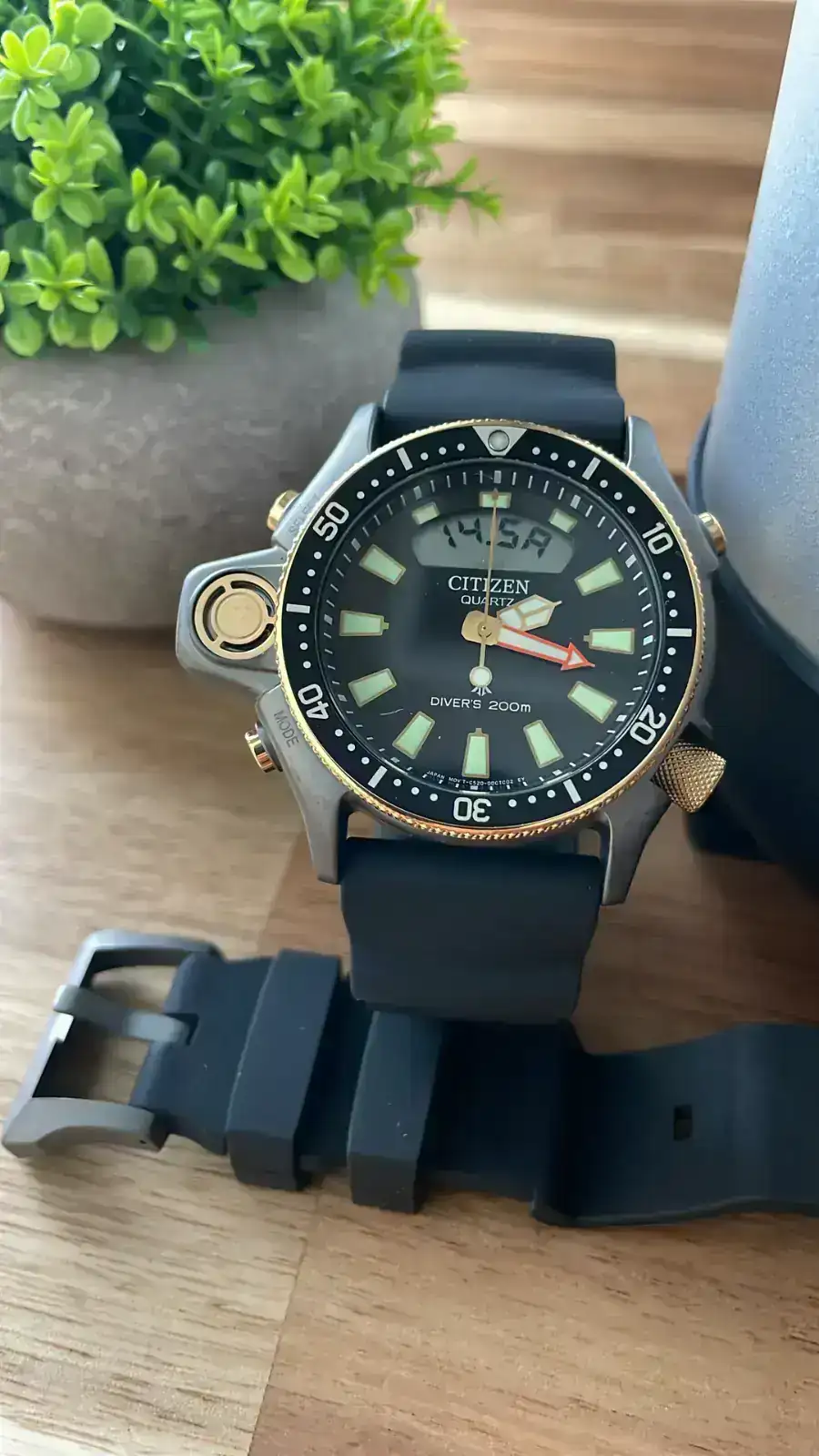 Un pregunta compañero:Unas fotos para abriros el apetito, a mi es lo q más me gusta, ver el bicho aunque sean fotos. El mío es probable que sea el primero que se haya vendido en el estado, llegó ayer y hoy lo he recogido y estrenado. No sé qué depara Citizen en un futuro, pero veo difícil q esto se repita. Por cierto, este modelo nace en 1985 y en mi opinión es el último Diver Tool Watch, dado que a continuación vinieron los ordenadores de buceo y aún y todo, sigue siendo un magnífico Diver Watch bien solo o como Back yo. Creo que aprox. 10 años después sale su revisión, es decir, el reloj que ha llegado hasta hoy y este 40 aniversario es la ostia de bonito se mire por donde mire.