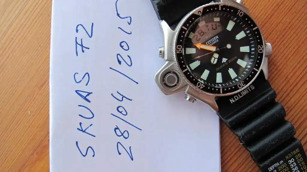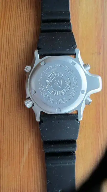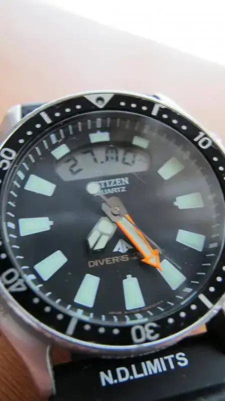 Ahora le toca salir a este icono. Su estado es muy bueno pero tiene una pequeña picadura en el bisel, que he intentado captar en las fotos, y un ligero arañazado en el cristal que con un ligero pulido se puede eliminar. Por lo demás su estado es perfecto. Recientemente se le cambio bateria, se hizo estanqueidad y se sustituyo su correa por otra nueva, además regalo una correa nato negra nueva