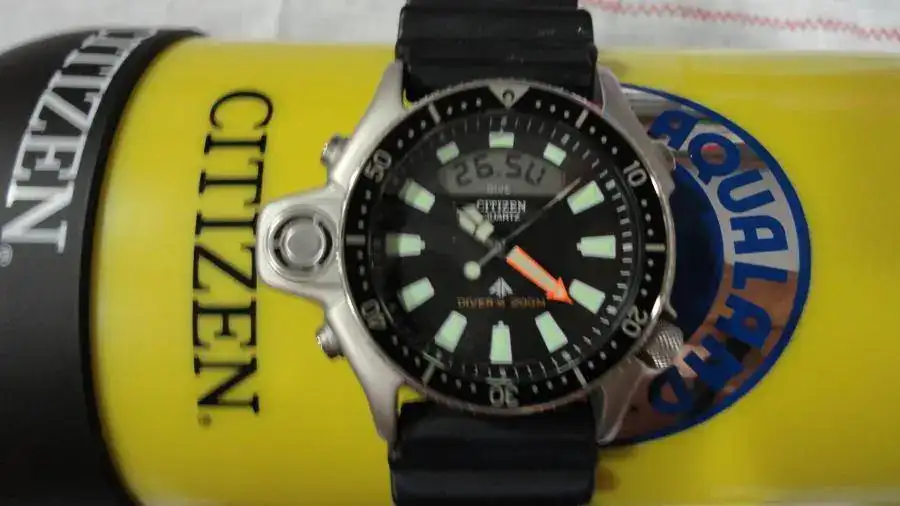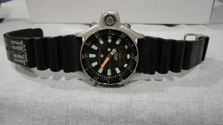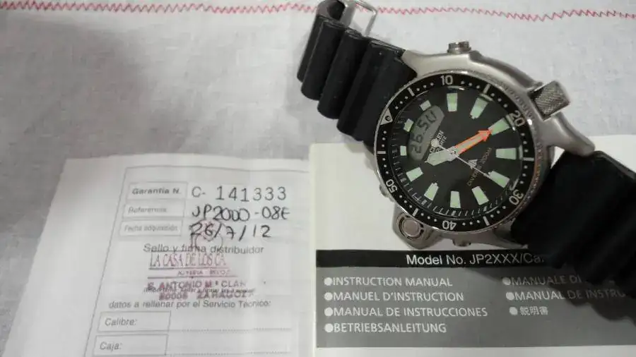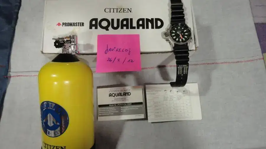 Vendo un icono de los relojes de buceo y deseado por todos, mi Citizen Aqualand I en un estado impecable al 99,9%, con solo un mes y 23 meses de garantía por delante, tal y como se puede ver en la foto de la garantía fechada y firmada.