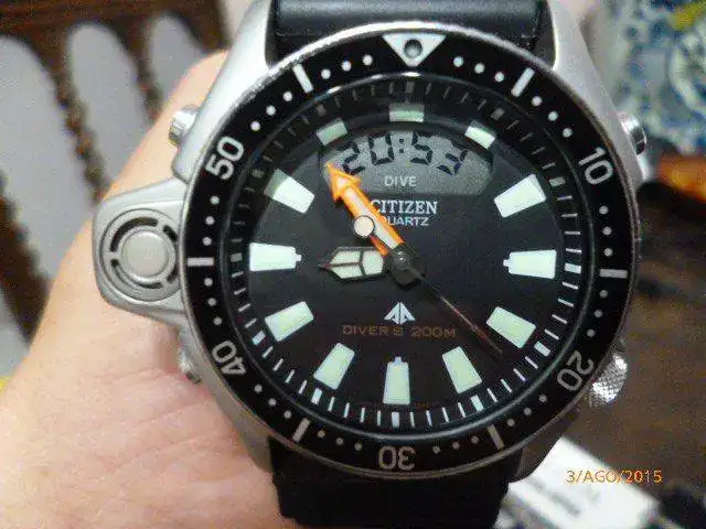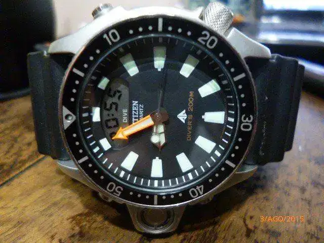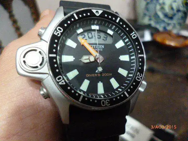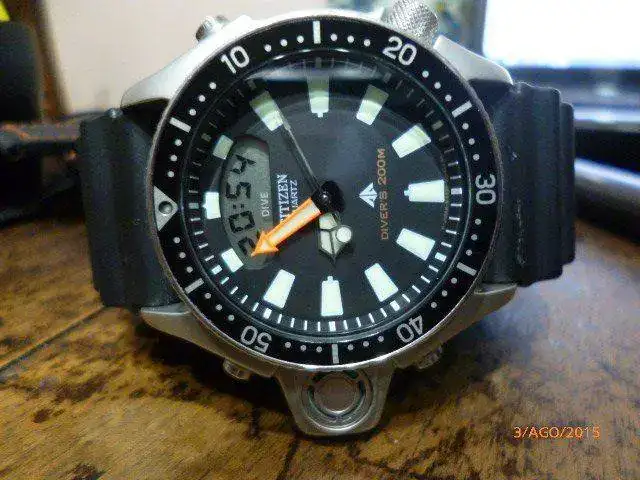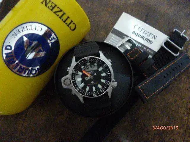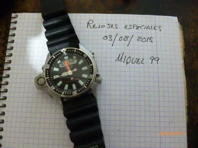 Hola compañeros sigo reestructurando la caja y le toca salir, desgraciadamente a este clásico de los diver, el aqualand jp 2000. El reloj, lo vendo más que nada por falta de uso. Adquirido en febrero del 2014, aún le queda por delante casi un año de garantía. Se entrega con toda su dotación, garantía vigente y de regalo una zulú de tres anillas, que le va que ni pintada y una correa dive con pespunte naranja, nunca utilizada. Hay que decir que tiene un micro pelo en el cristal a la altura del marcador, de las 9h, casi imperceptible y a las fotos me remito, pero esta ahí. la caja está impoluta. El reloj lo dejo por 300E. Podría contemplar algún cambio, pero priorizo la venta. Atiendo las consultas por privado.Dar gracias al foro y a sus moderadores, por cedernos amablemente este espacio y a todos vosotr@s por vuestra atención.