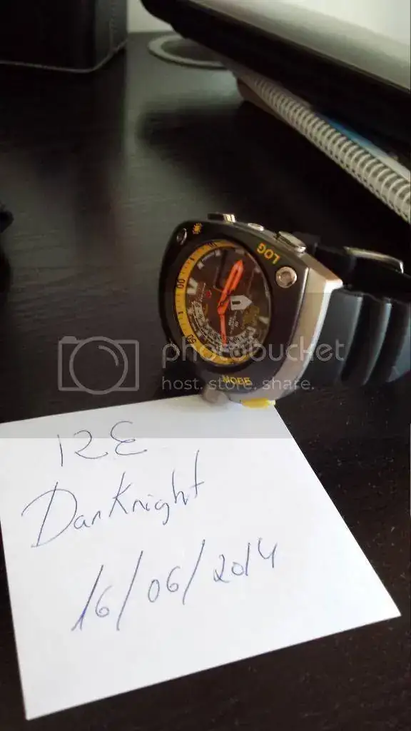 El reloj tiene muy poco uso, es de diciembre del año pasado ( comprado a un forero hace unos meses, podeis ver el anuncio y lo que pagué por él...) tiene fechada y sellada la garantía, no ha visto el agua, una pena, y tan solo tiene unas marquitas en la caja. El cristal está impoluto y la correa tiene mucha vida por delante. El set está completo, con instrucciones, con la caja que simula una bombona de oxígeno, la extensión para el traje de buceo...