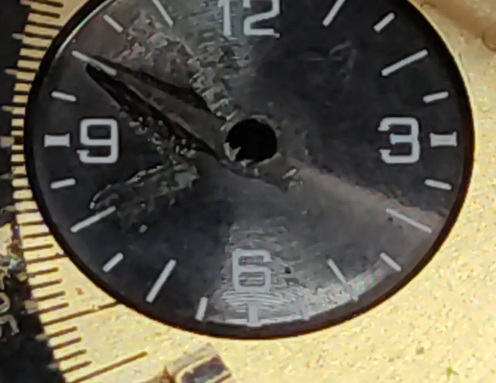 Enhorabuena por ese trabajazo. A disfrutarlo con salud.Bueno, quiero presentar el reloj acabado, me ha costado lo suyo dejarlo fino para que el Split se ponga a cero y cuadrar las agujas, el dial está un poco cascado, pero he podido conservar el original, puesto que se parece más bien poco al que compré nuevo.Ver el archivos adjunto 2386324