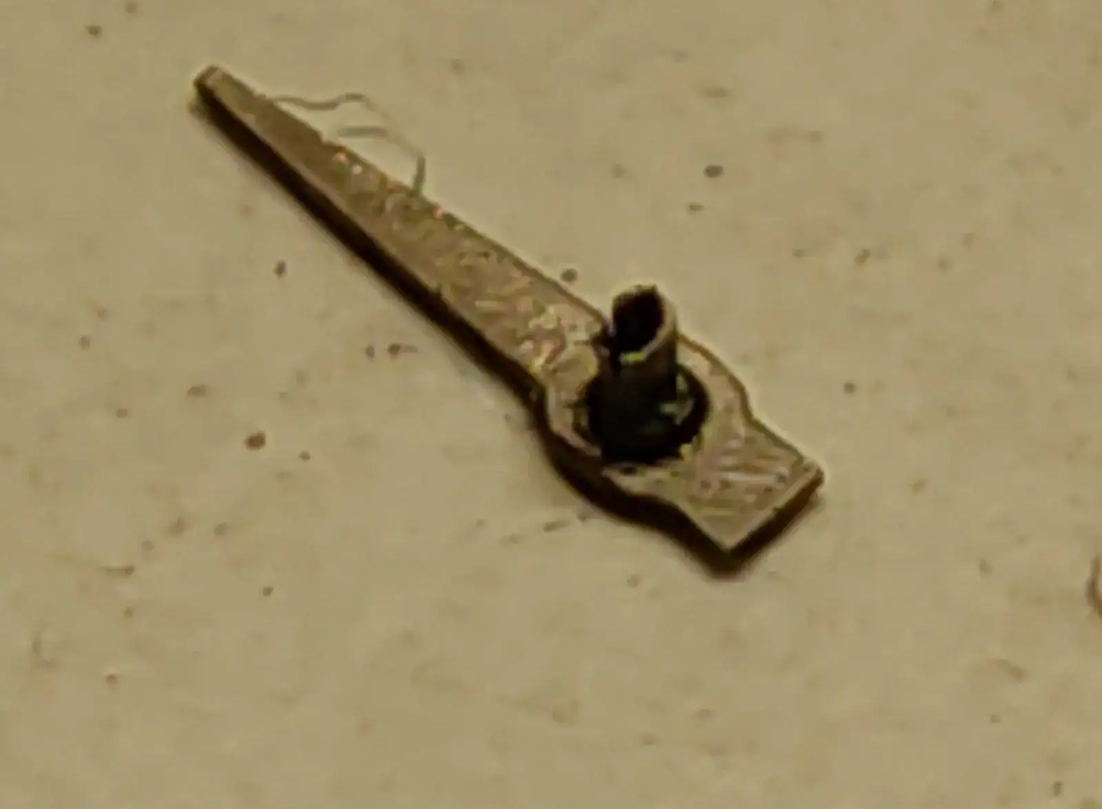 A este que tengo casi restaurado le faltaba una de las agujas contadoras y como ves en la foto el cañón de la que traía estaba reventado, así que he fabricado una aguja nueva y a la otra le he hecho un cañón en latón.